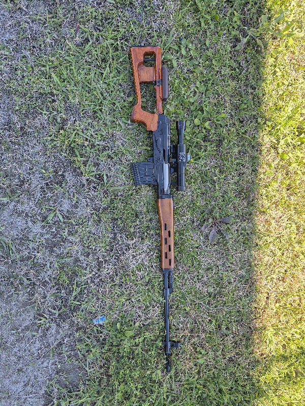 My local Gun guy is selling a Chinese NDM-86 Dragunov rifle. It has 3 magazines and is the cleanest one I've ever seen. It is a KSI import with absolutely beautiful wood. Currently has it listed for $10500 but think he has some wiggle room. Wish I had the money but I don't. Let me know if you're interested and I'll forward his info to you. Thanks