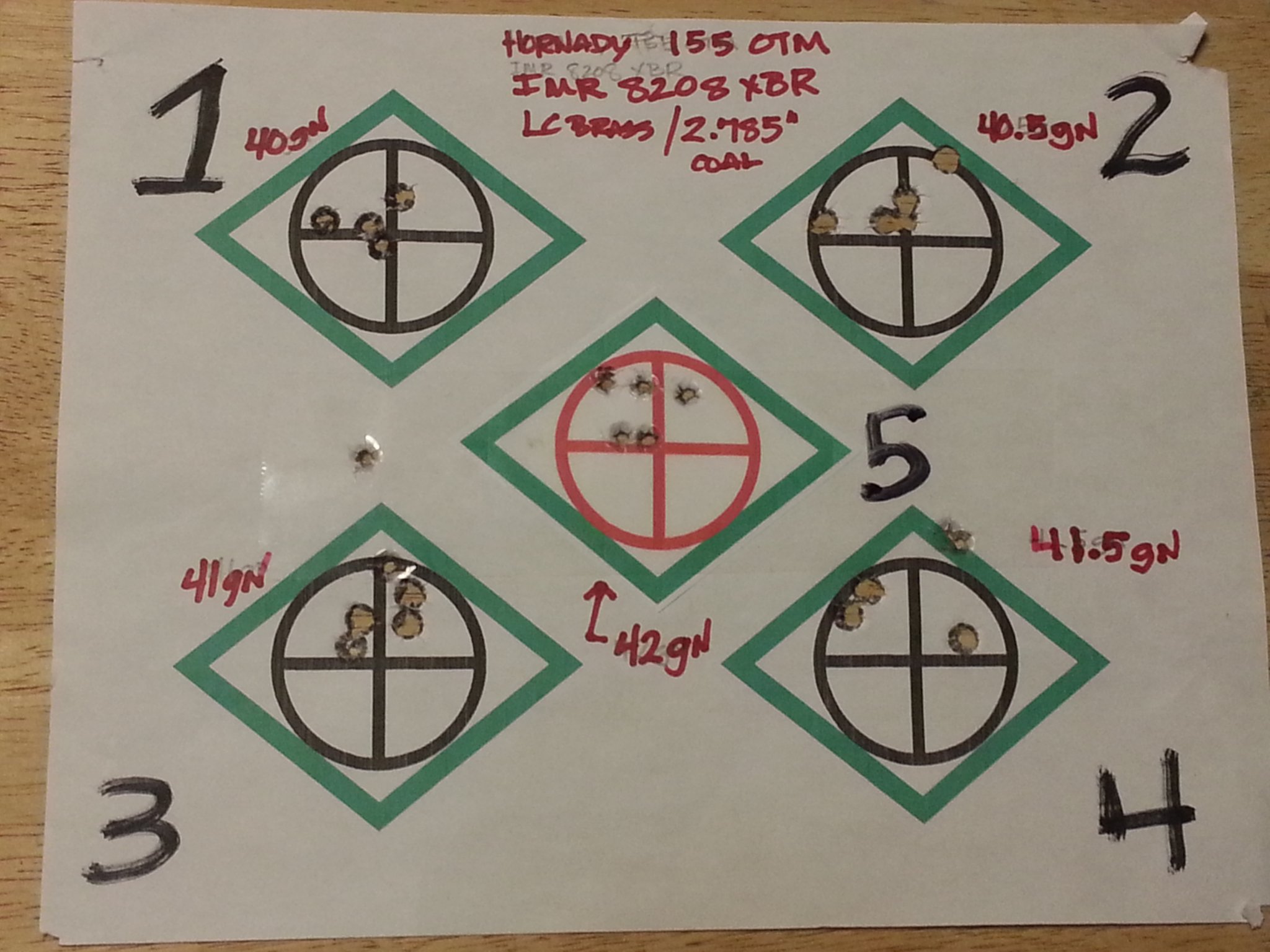 For reference - a couple OCWs with 105 Bergers over Varget and 58 VMax over xbr8208. 18" proof Carbon. Shoot well under moa with both 105 and 108 factory loads as well. My 12.5" Faxon prints into 1.5" with 105s and 2" with 108s at 100 for 10 shot groups. My barrel started to group consistently at about 50 rounds down the tube.