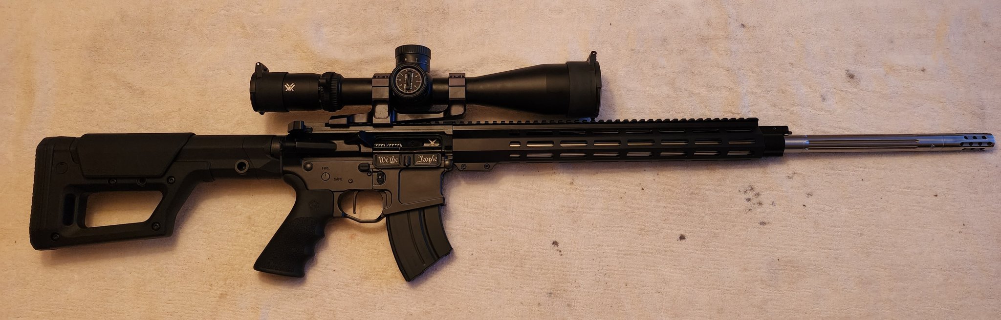 Very nice! I’m running a ‘CMMG Resolute 100’ 20” 6MM arc upper, and PSA carbine lower. It is pretty light weight, but I think that’s from the pencil barrel. Glass is Steiner M8Xi 1-8 with Reptilla Aus 34MM mount, suppressor is a OCL Polonium (in jail) I still haven’t ordered a freakin bipod 😞 I honestly cannot decide between Atlas BT46LW17 or Accutac BR4G2, or maybe even the TBAC bipod but the TBAC is kind of pricey. I literally cannot decide though. I like them all.