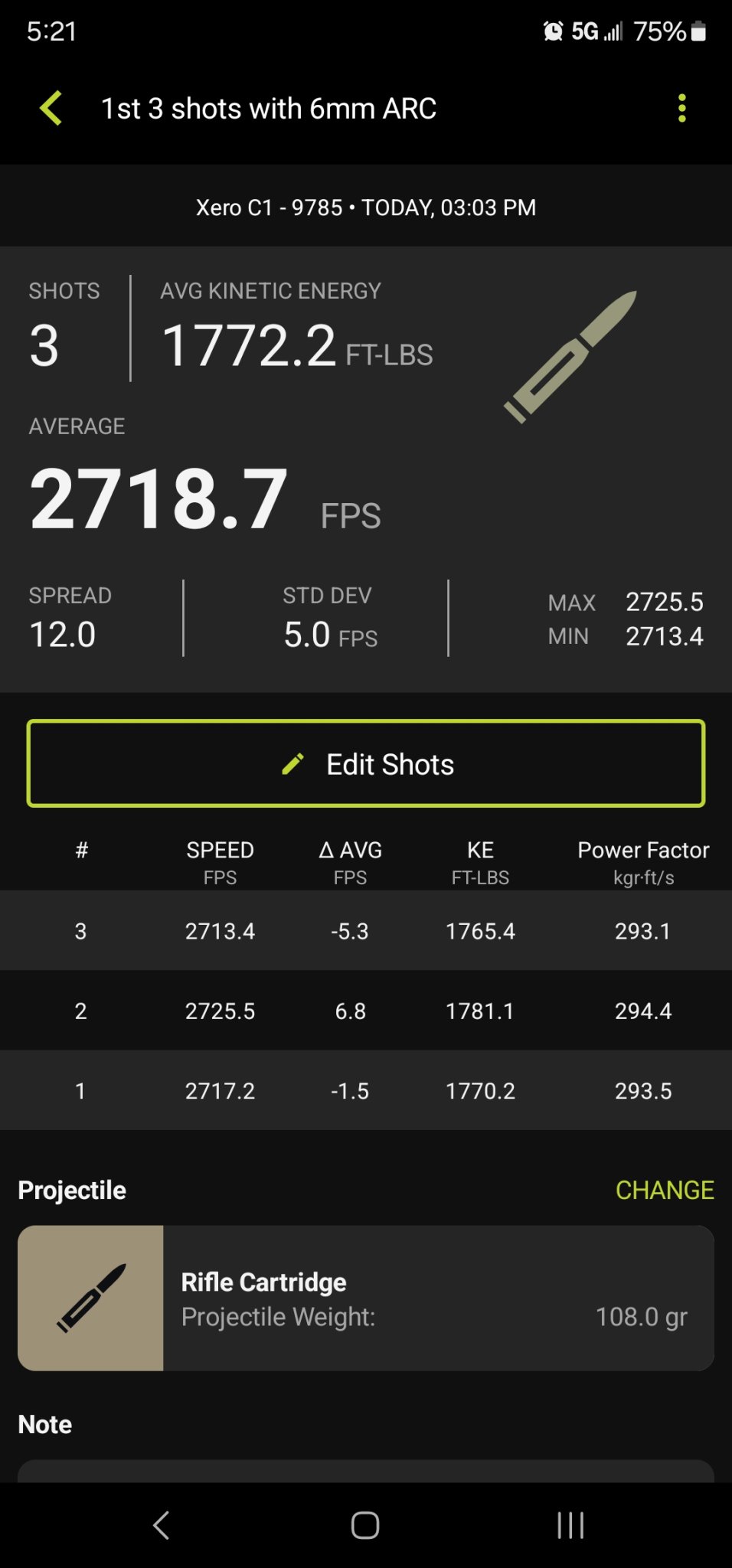 I ran out of time at the range with prioritizing breaking in my 300blk. But I did get the 1st 3 rounds of hornady 108gr factory ammo down the 24" xcaliber barrel and chronographed. I sure hope it speeds up as it breaks in.