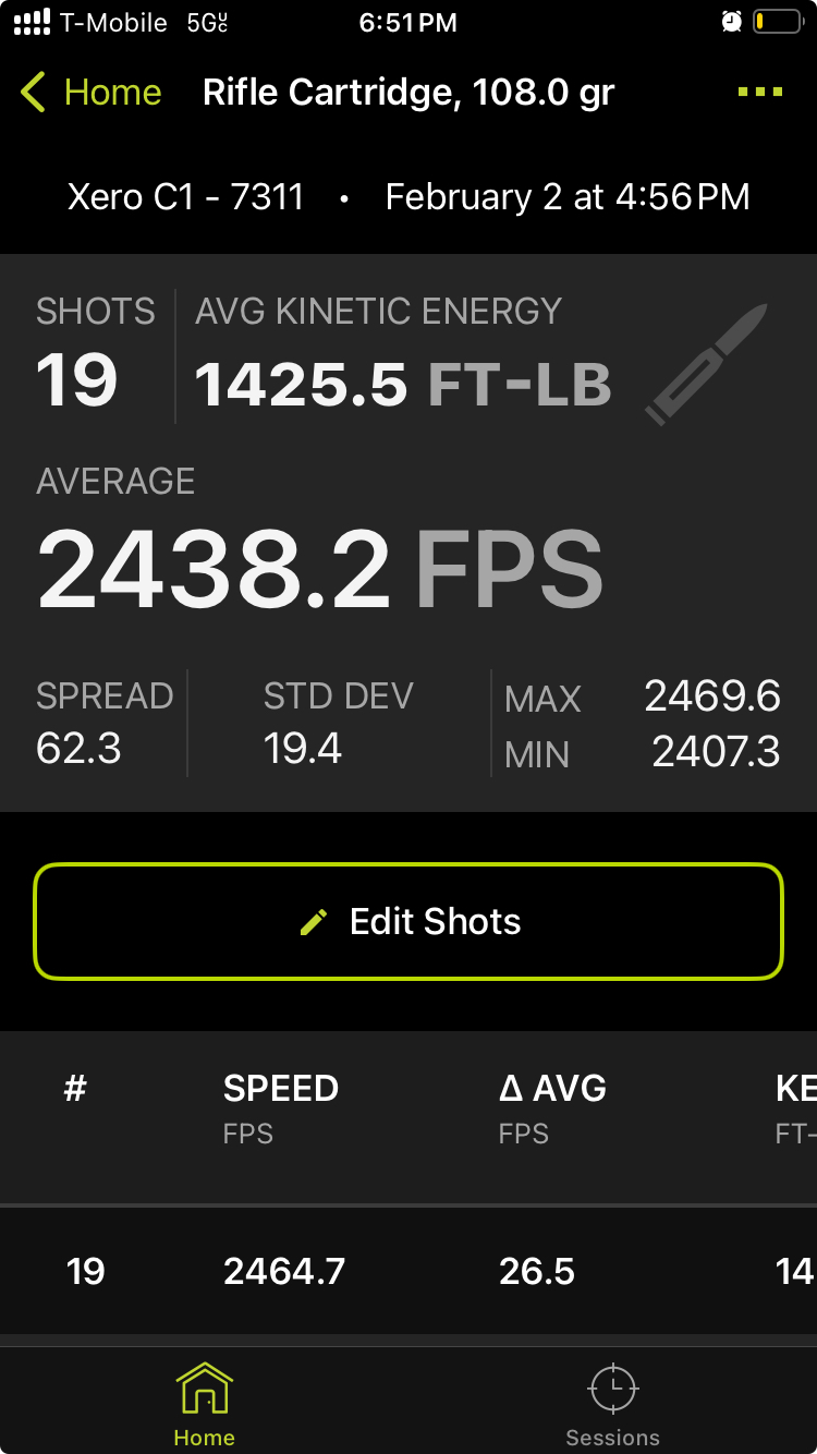 With the factory Hornady 108 I am getting around 2670 for velocity with the 20" Proof barrel. If I can keep it around there I would be happy.