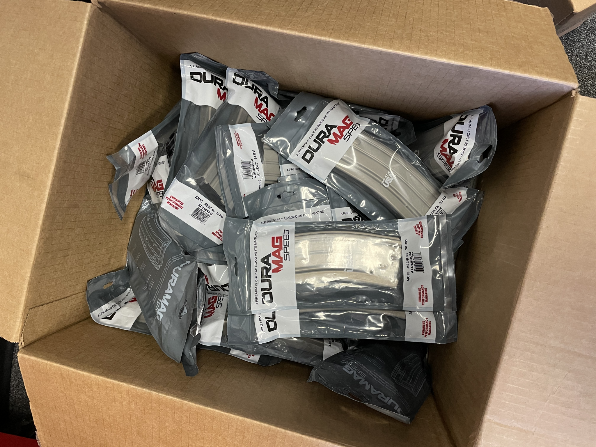 Brand new Duramag AR15 magazines, they are a variety of shades of gray both orange and black followers.