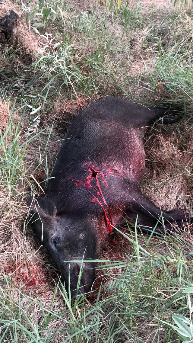 Several hogs came out, and i could quickly move the rifle from one window to another without making a noise. Took the shot at the chest of the big boar as he won’t stand still. He dropped and i could quickly reposition, cycle the bolt and take another shot at a piglet that ran and stopped, at only 20 yards.