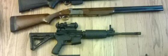 That's my Winchester O/U above an AR Carbine. Forget nose to charging handle, I'm nose to barrel nut