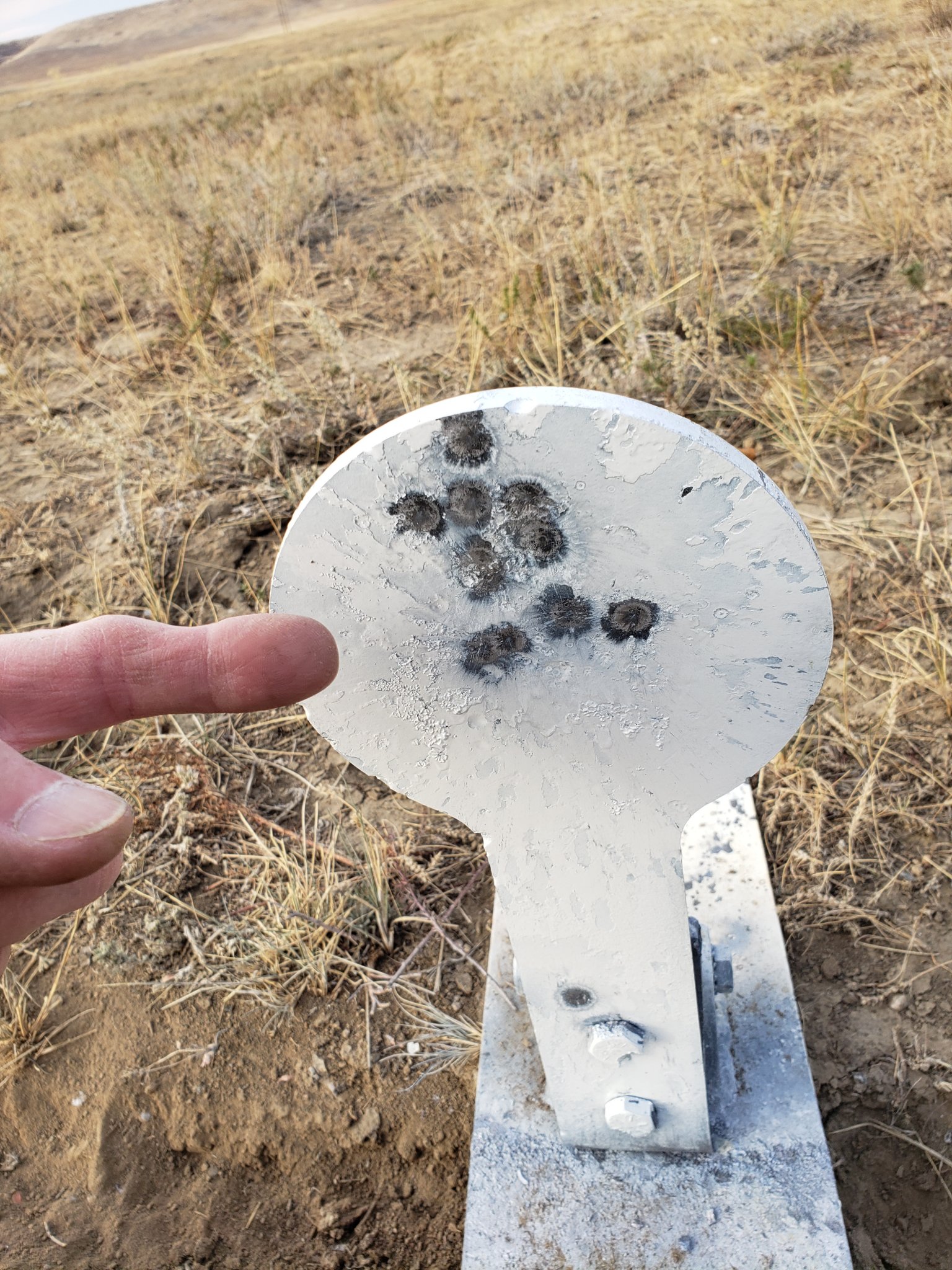 Back from the range. My 2 rimx builds were on the back burner as the outing was to verify 0 and some dope on a few of my long range hunting rigs as we leave to go elk hunting in a week. But of course wanted to see if they would shoot... At the very end (almost dark) I grabbed them both. Took 3-4 shots at 50 to do a quick zero. Then loaded 10 rounds in each mag. Handed one rifle to a buddy who really doesn't ever shoot. May even of been his first time off a bipod and prone and the other rifle to my girlfriend who only occasionally shoots and said lets see who does better... They both seemed to feed fine and shoot fine with center x. But maybe only 13-15 rounds through both. Here's their very amateur 10 shot groups at 50. I'm just happy I didnt have major issues.