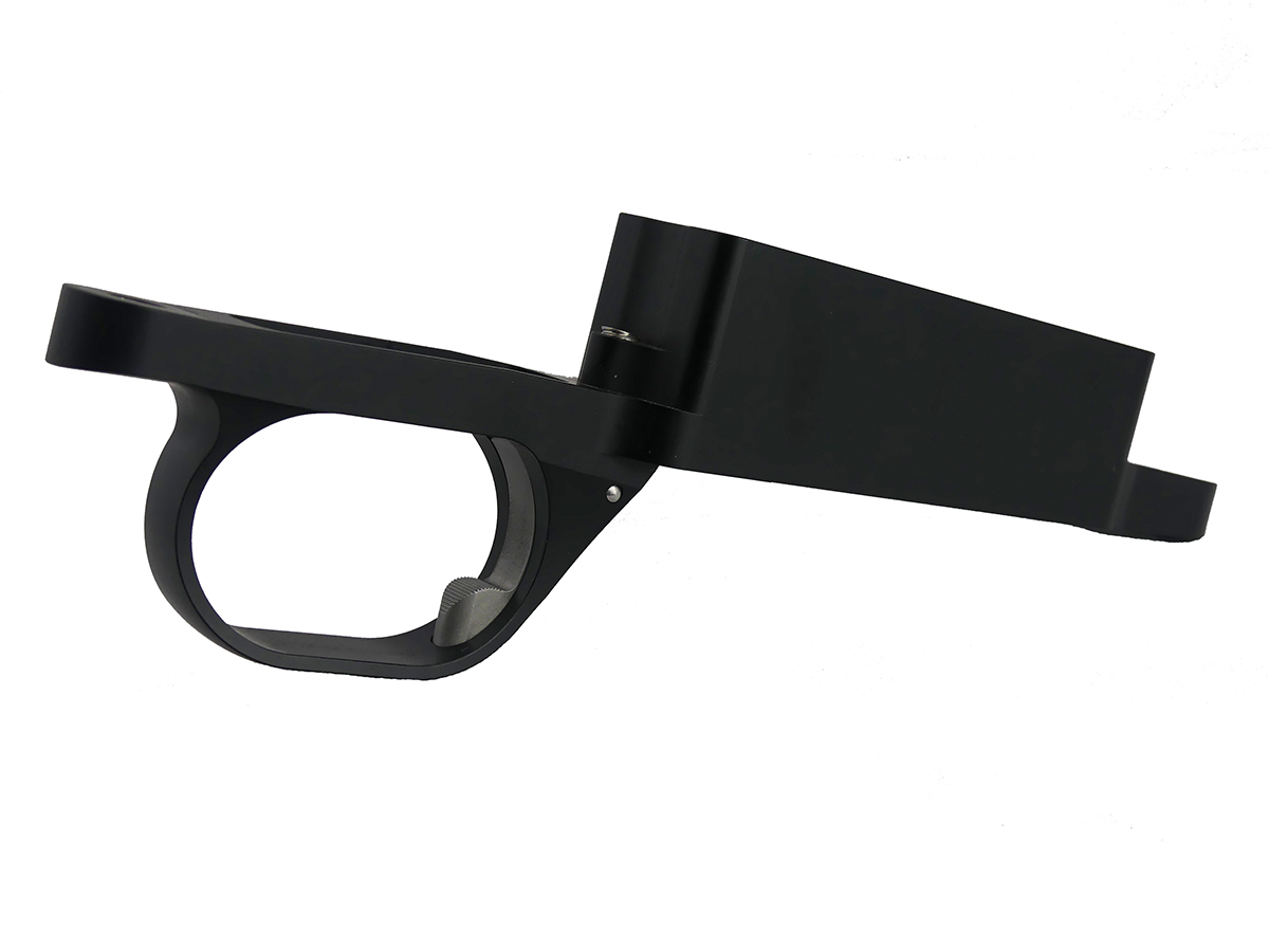 The bottom metal is machined from a single piece of billet 6061 and features a patented cantilever spring mag release system that will not open under heavy recoil. The magazine release is also adjustable, sleek and all but impossible to actuate accidentally.