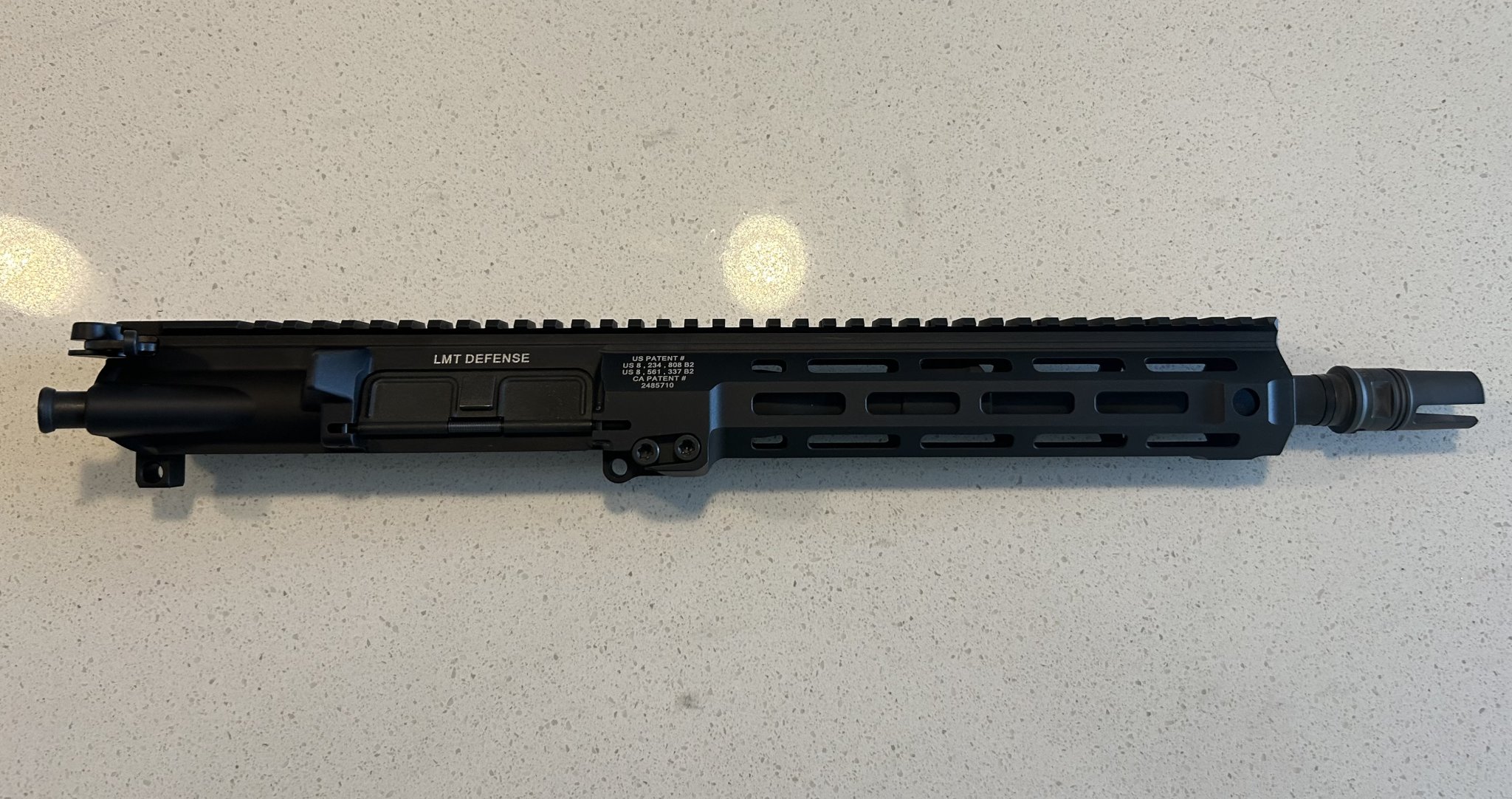 New LMT MRP 10.5” upper in 300 blackout. Comes complete with charging handle and full auto bolt carrier group, all LMT. Also comes with a Surefire 3 prong flashhider/suppressor adapter.