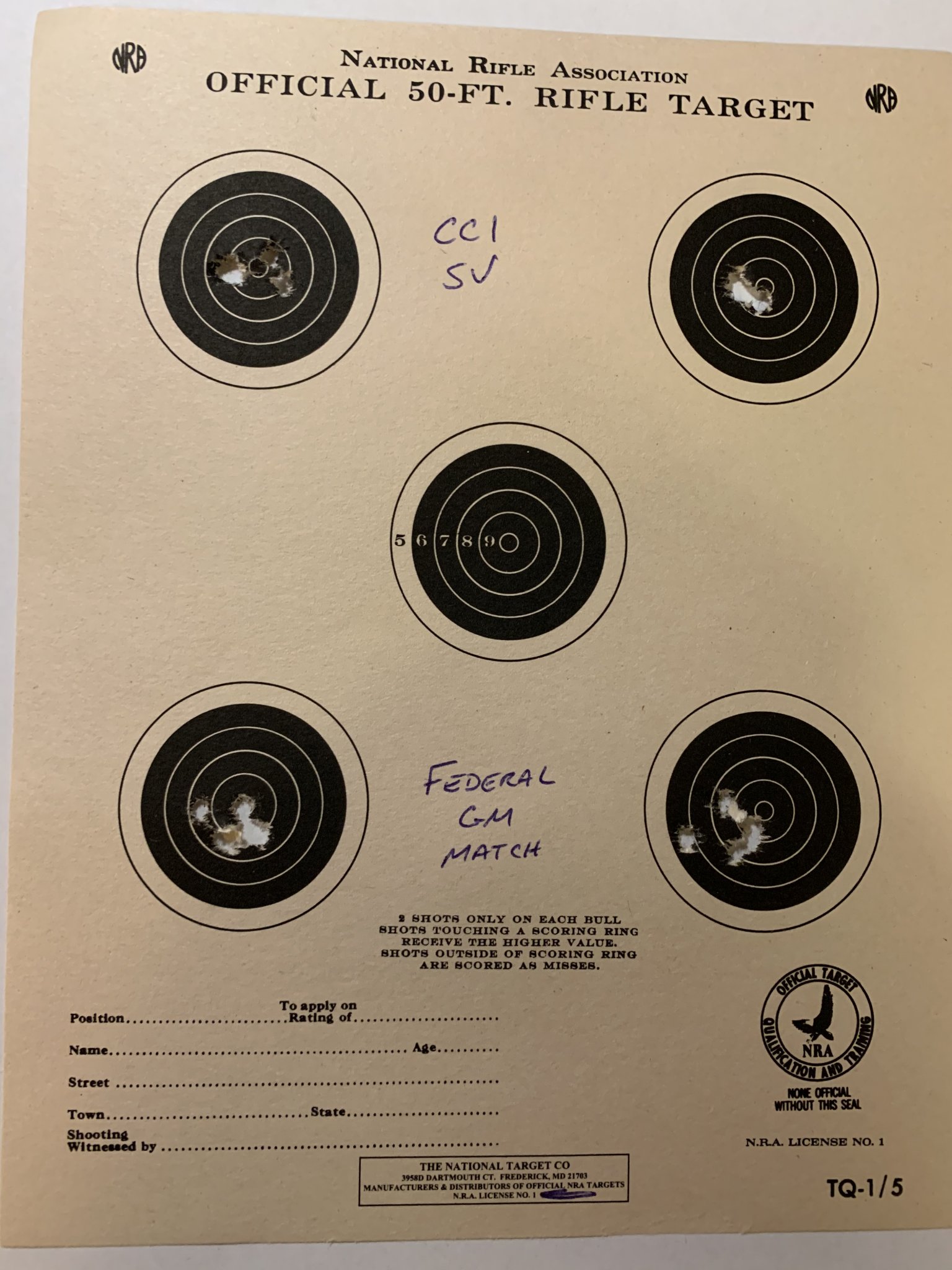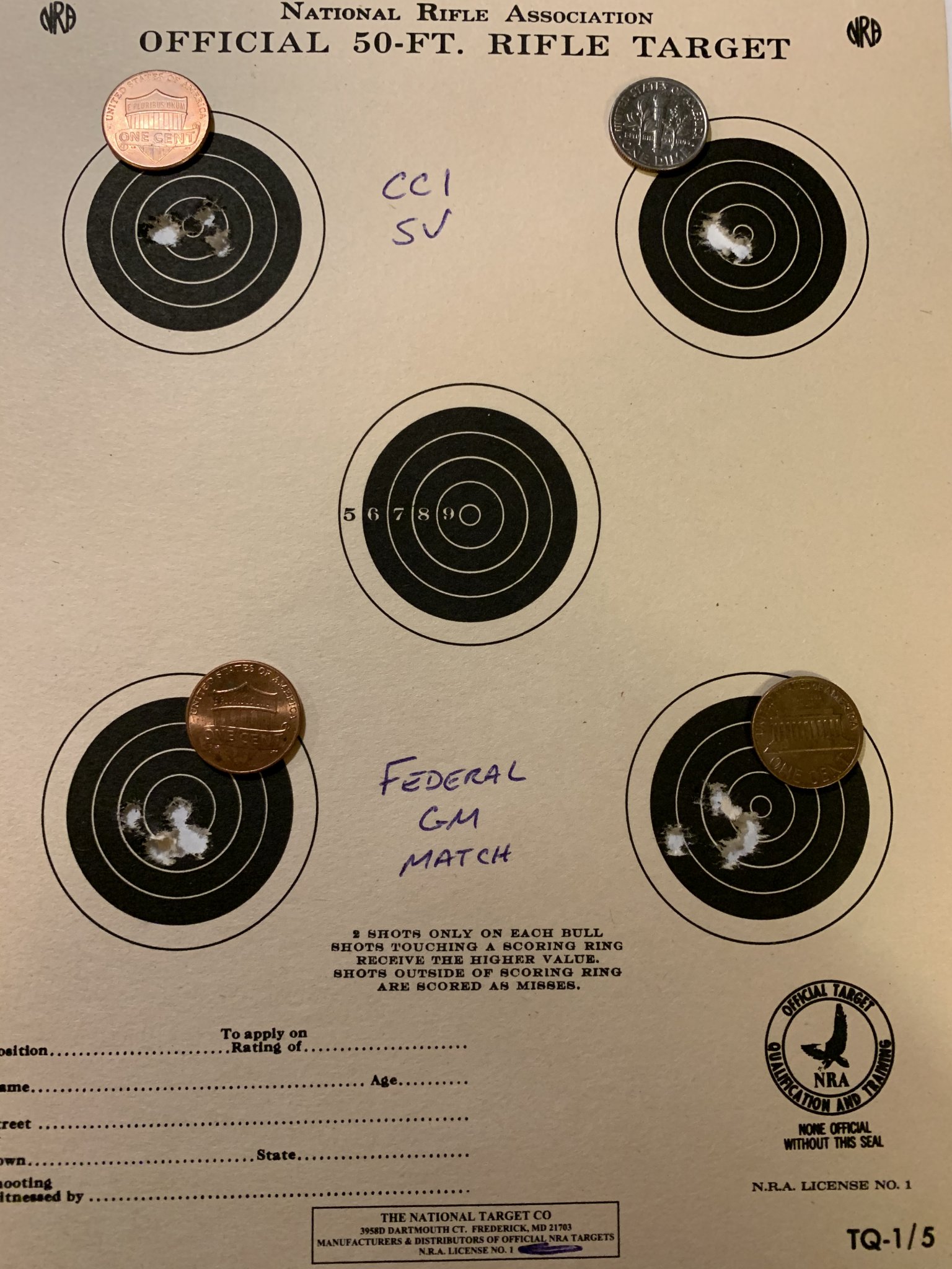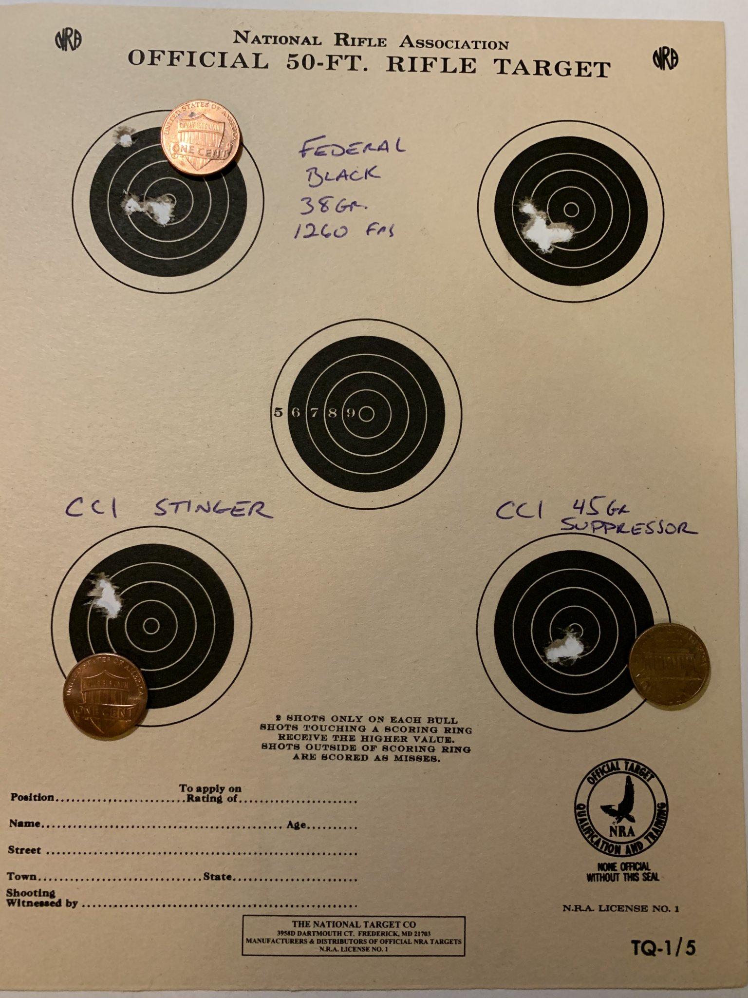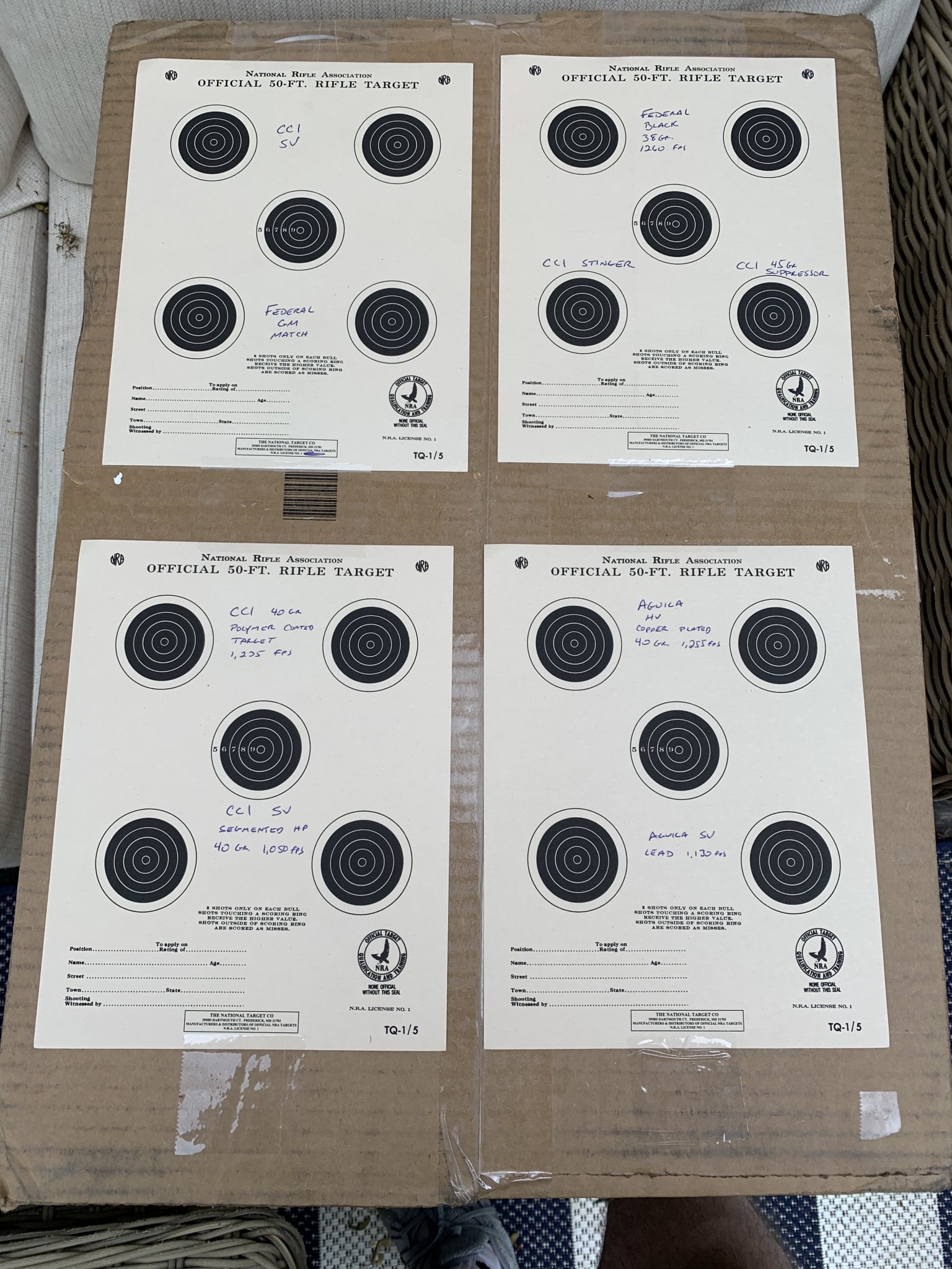Ammo tested today, 5 shot groups, 50 yards. CCI standard velocity