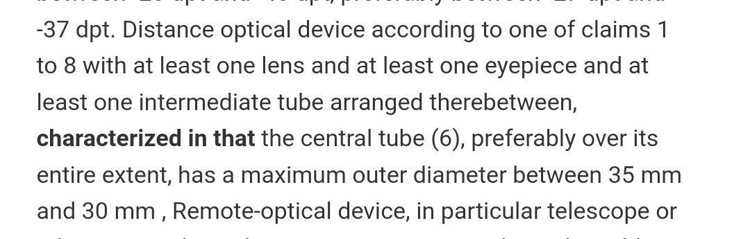 I wonder if that's why we're seeing 36mm scopes. At the time the patent was written Swarovski was obviously trying to lock up the market for 30mm and 34mm tubes which covered pretty much every high magnification / high elevation travel scope on the market in 2006, but 36mm is obviously greater than the maximum 35mm outer diameter specified in the patent. So maybe ZCO didn't go 36mm for reasons of more elevation travel (although that's certainly a side effect of doing so) but rather to avoid patent infringement issues.