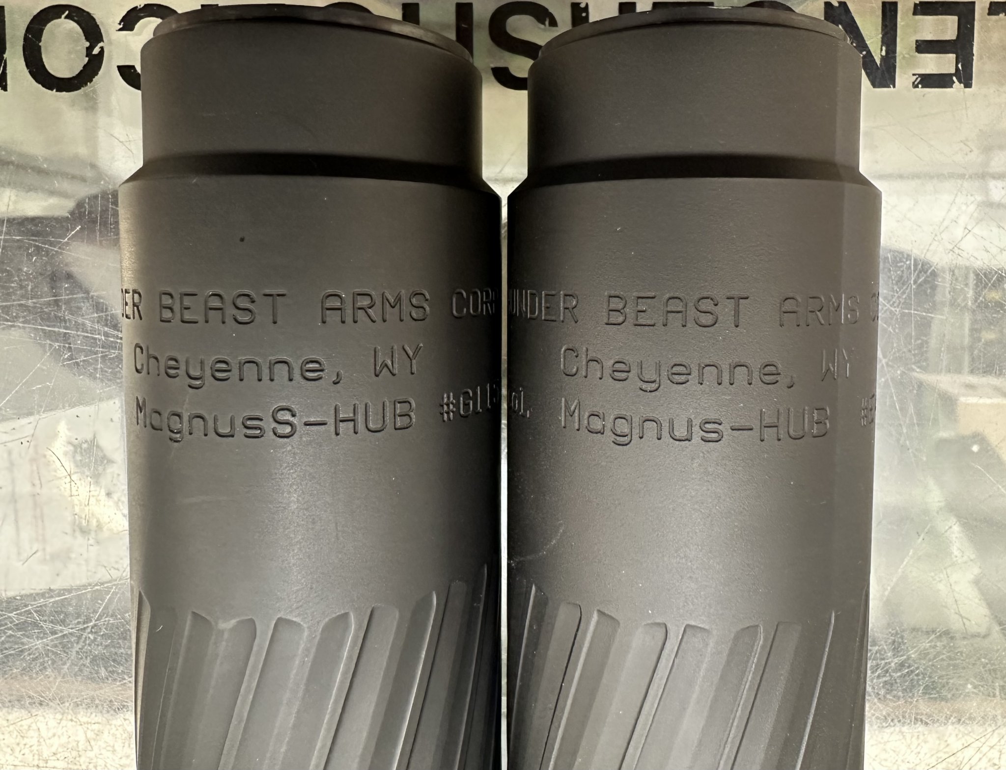 Some good looking cans. Still waiting on my Magnus SR to clear from Dec.Went and put the first shots through the new Magnus-S HUB today... Did some side-by-side video and photo comparisons with my full-size Magnus-HUB. I got plenty of footage for the next few months. I even shot some of my subsonic .308 Win handloads from my 16" MPR and my 210 RDF load from it. Mostly the comparisons were with my 20" 7mm-08 (shown below).