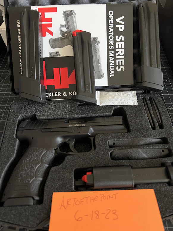 New unfired HK VP9 Optics Ready 9mm Pistol w/ (3) 17rd & 2- 20 rd mags Mags and Night Sights 81000484 $625.00 Not tax, no shipping!