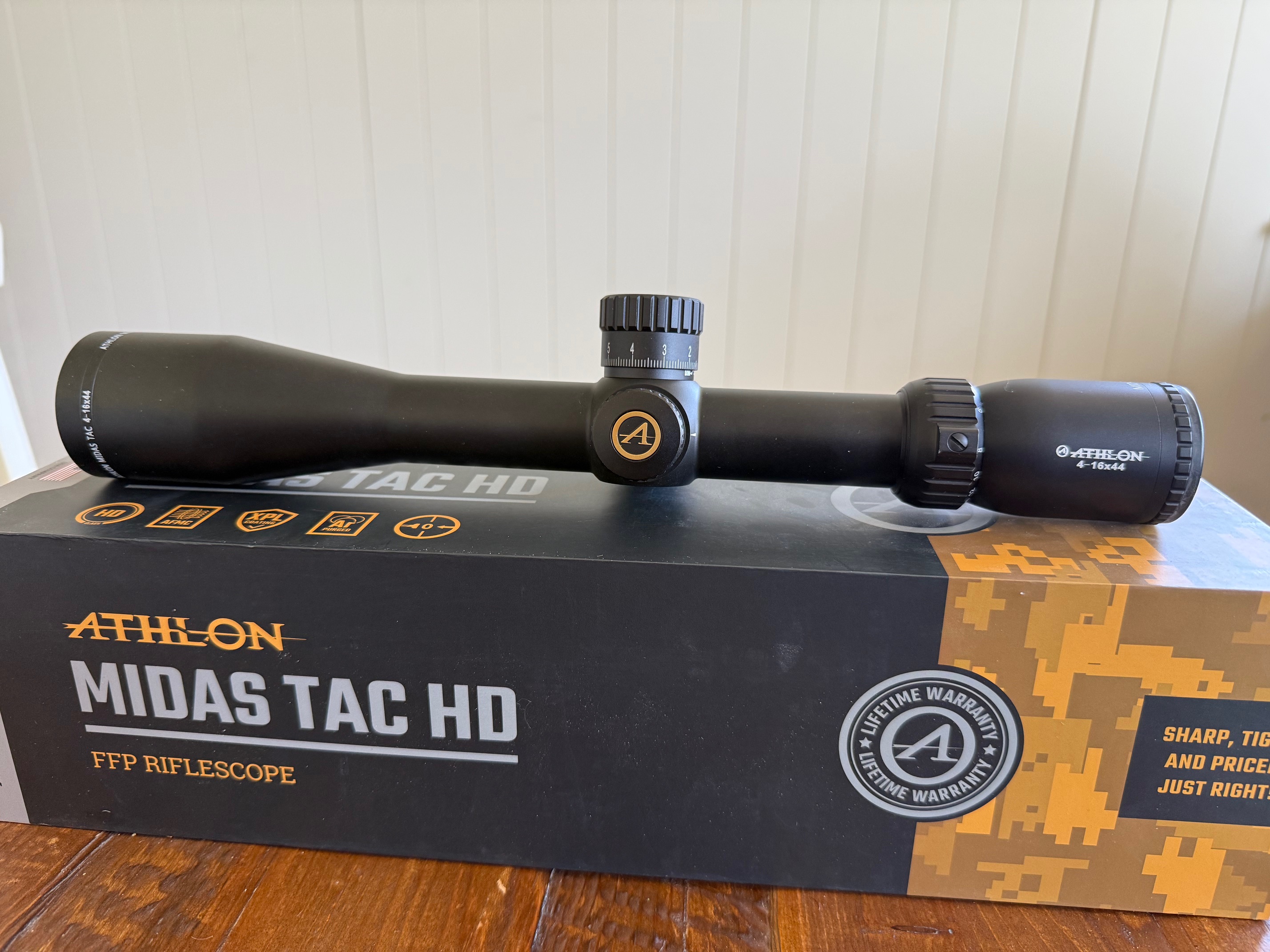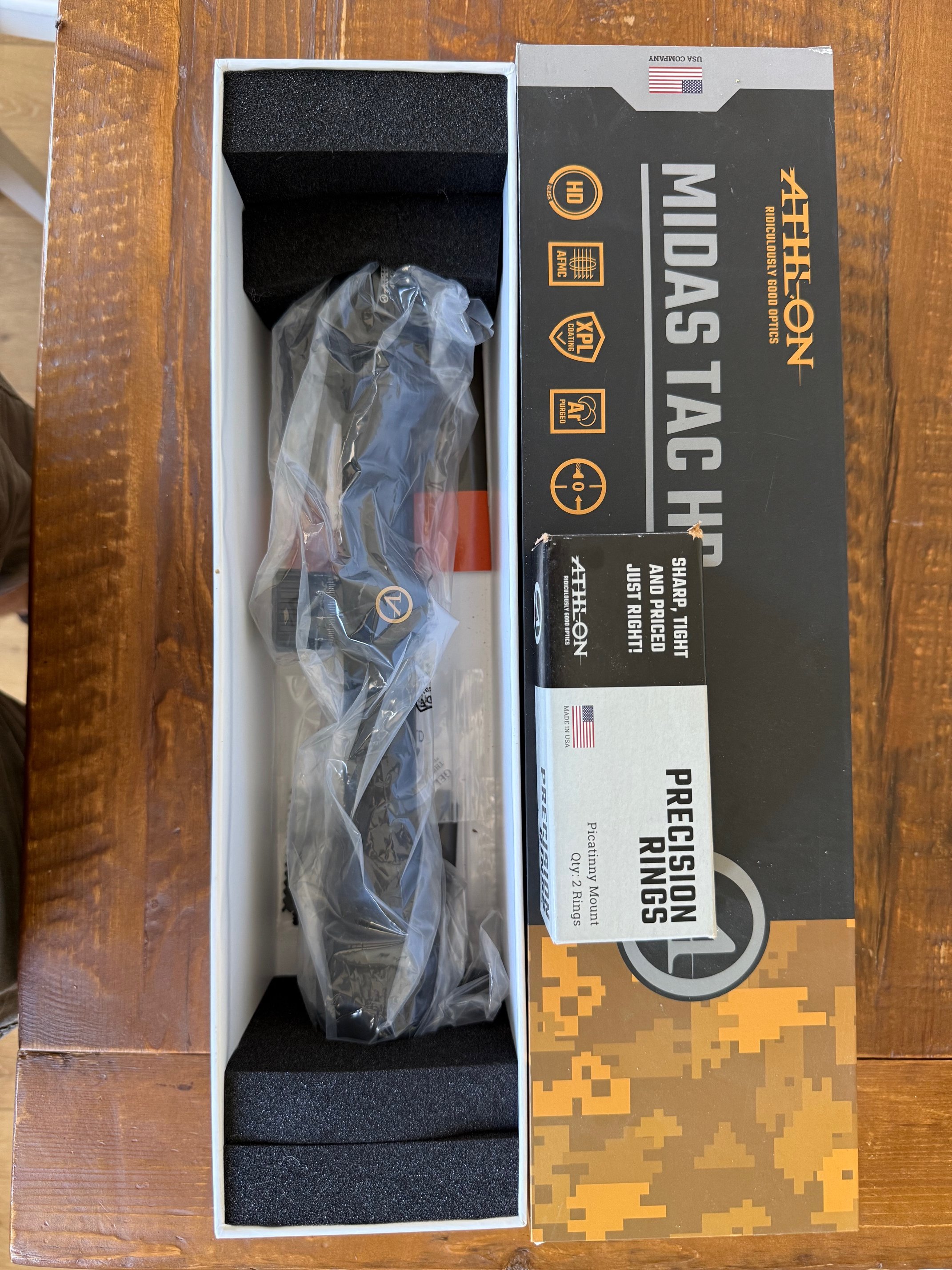 For sale is a brand new in box Athlon Midas Tac HD 4-16x44 FFP Mil scope with brand new Athlon rings.
