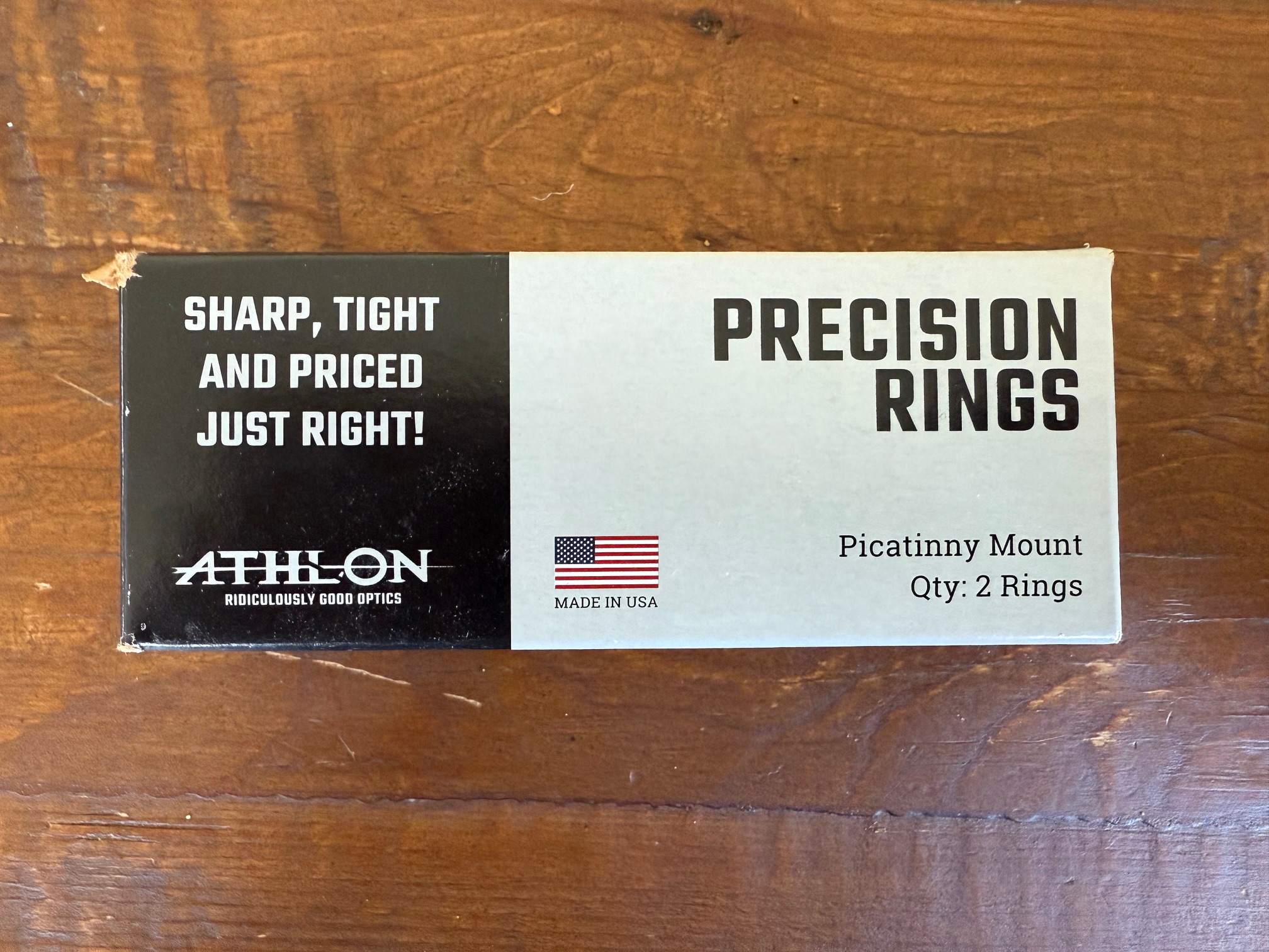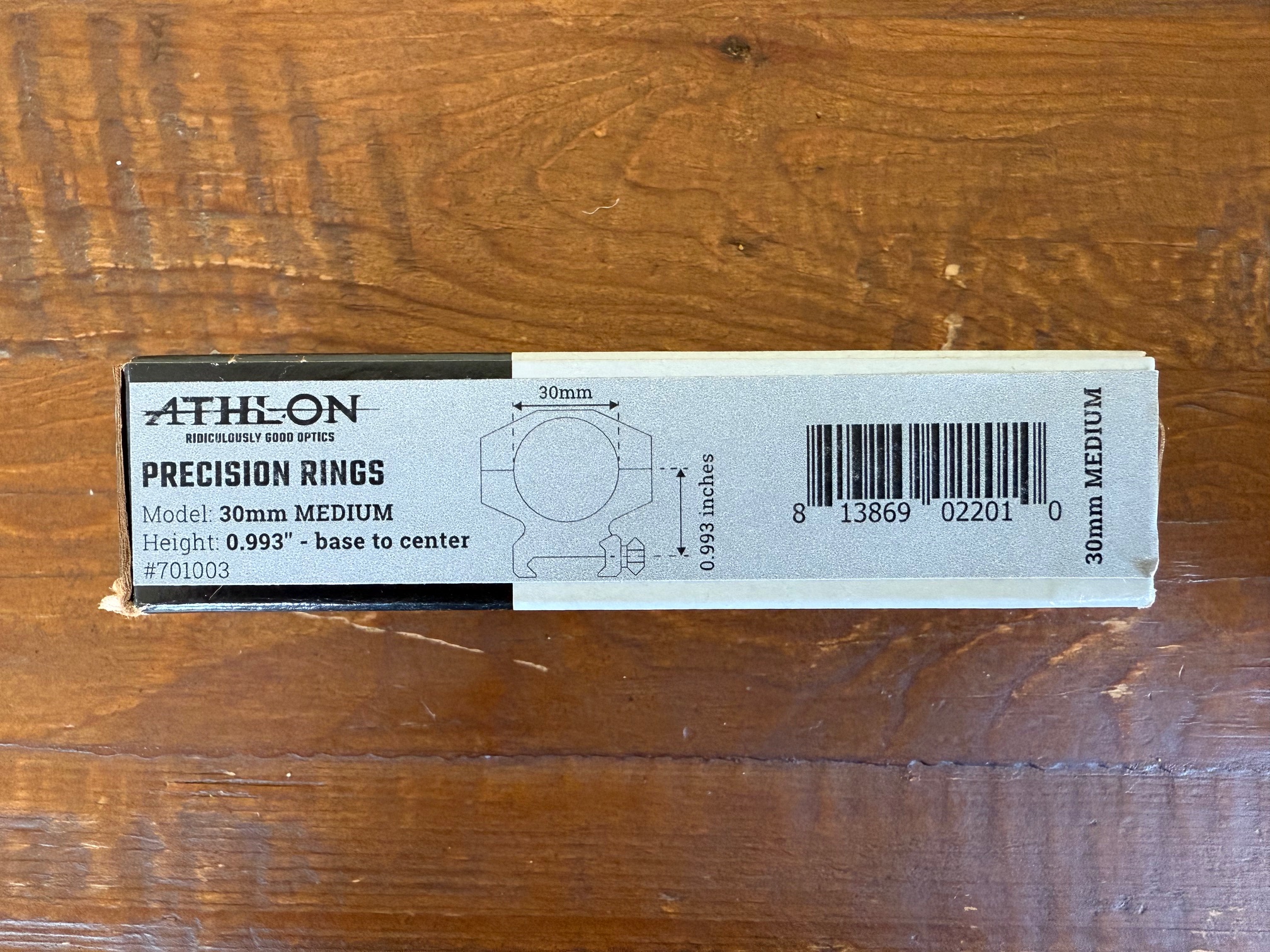 Included in sale are 30mm Athlon Precision Rings, Medium Height.