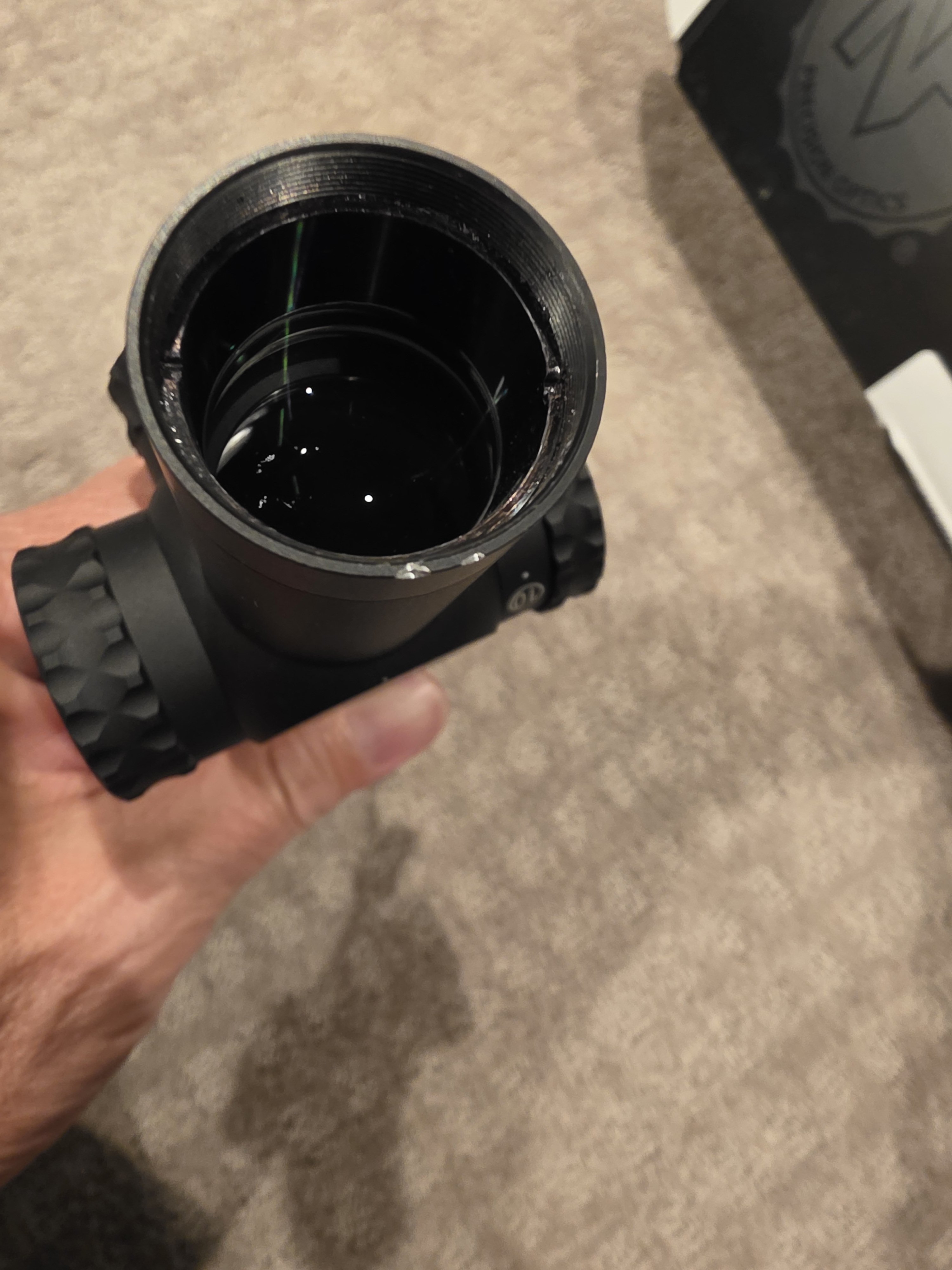 Oddly, it really WAS a demo, as evidenced by marks on the objective lens, shown below. Doesn't affect performance.