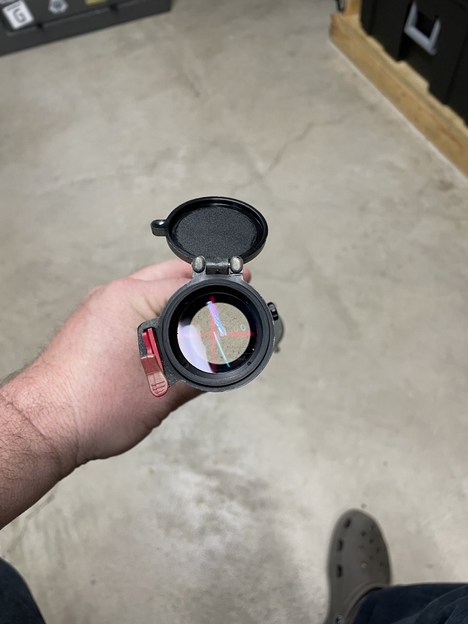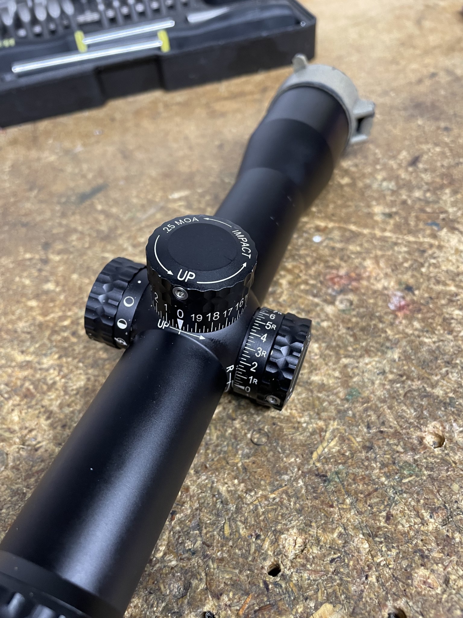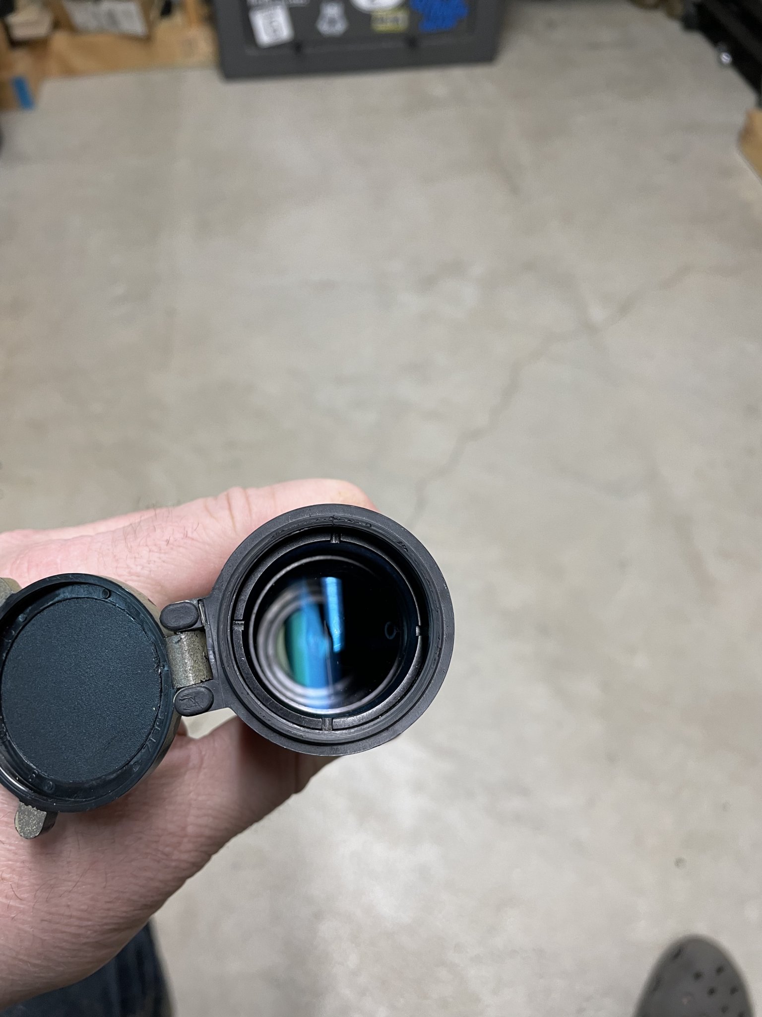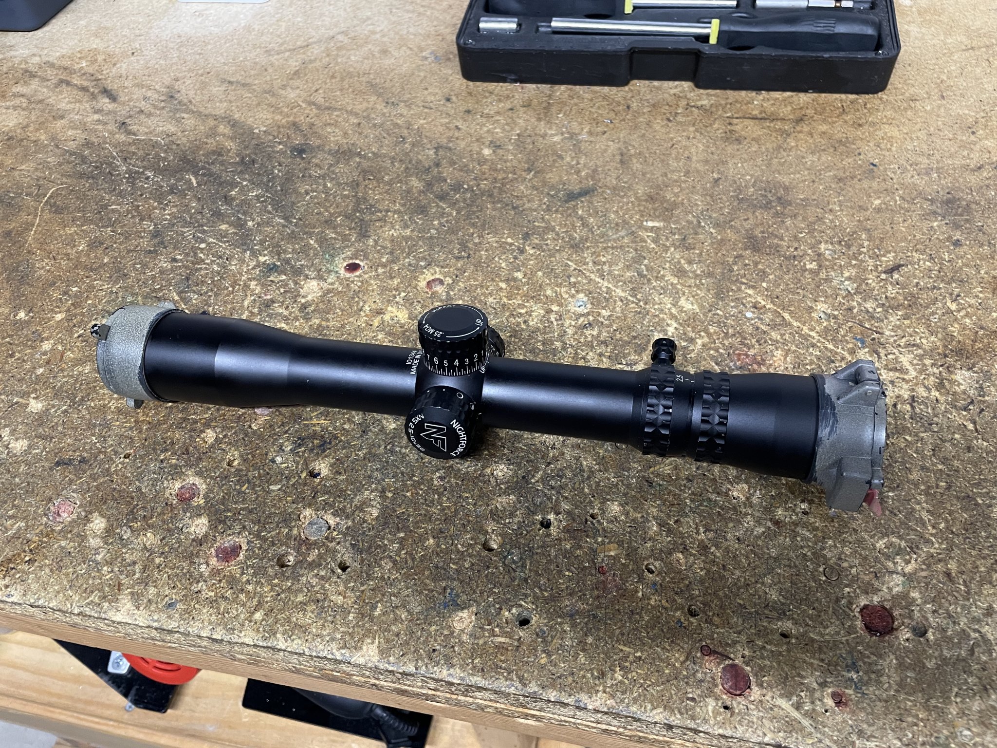 Nightforce NXS 2.5-10x32 scope. Mil dot reticle, .25 MOA turrets, illuminated reticle, zero stop. Second focal plane. I’m the second owner of this scope. I’ve used it for approximately 400 rounds of 5.56 and it has been flawless. Some minor wear and ring marks. Glass is spotless. It will ship with painted BC caps for protection but you’ll probably want to replace at least the front as it barely stays closed. I do not have the box or manual. I do have the plug for the magnification knob if you prefer not to use it.
