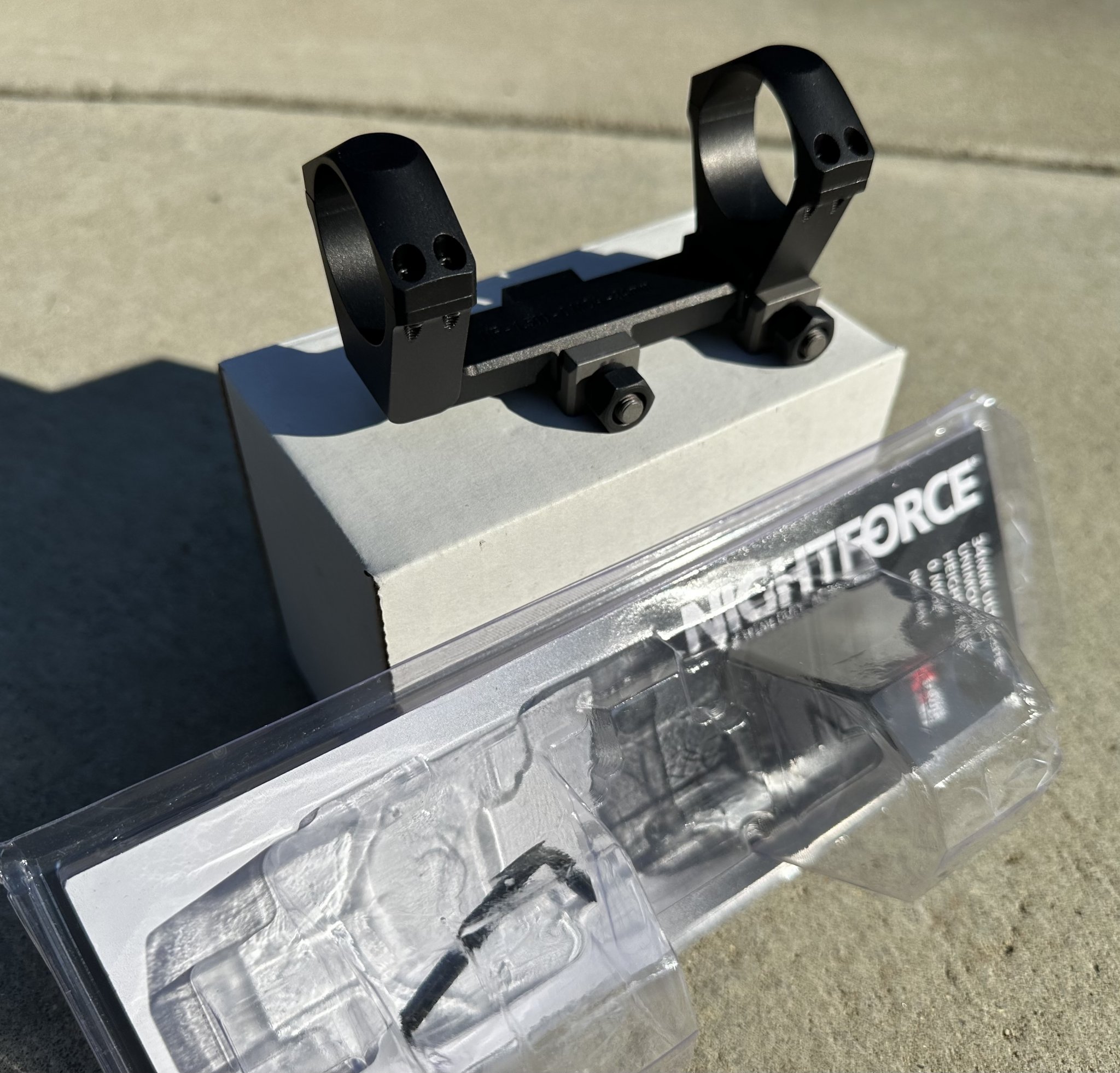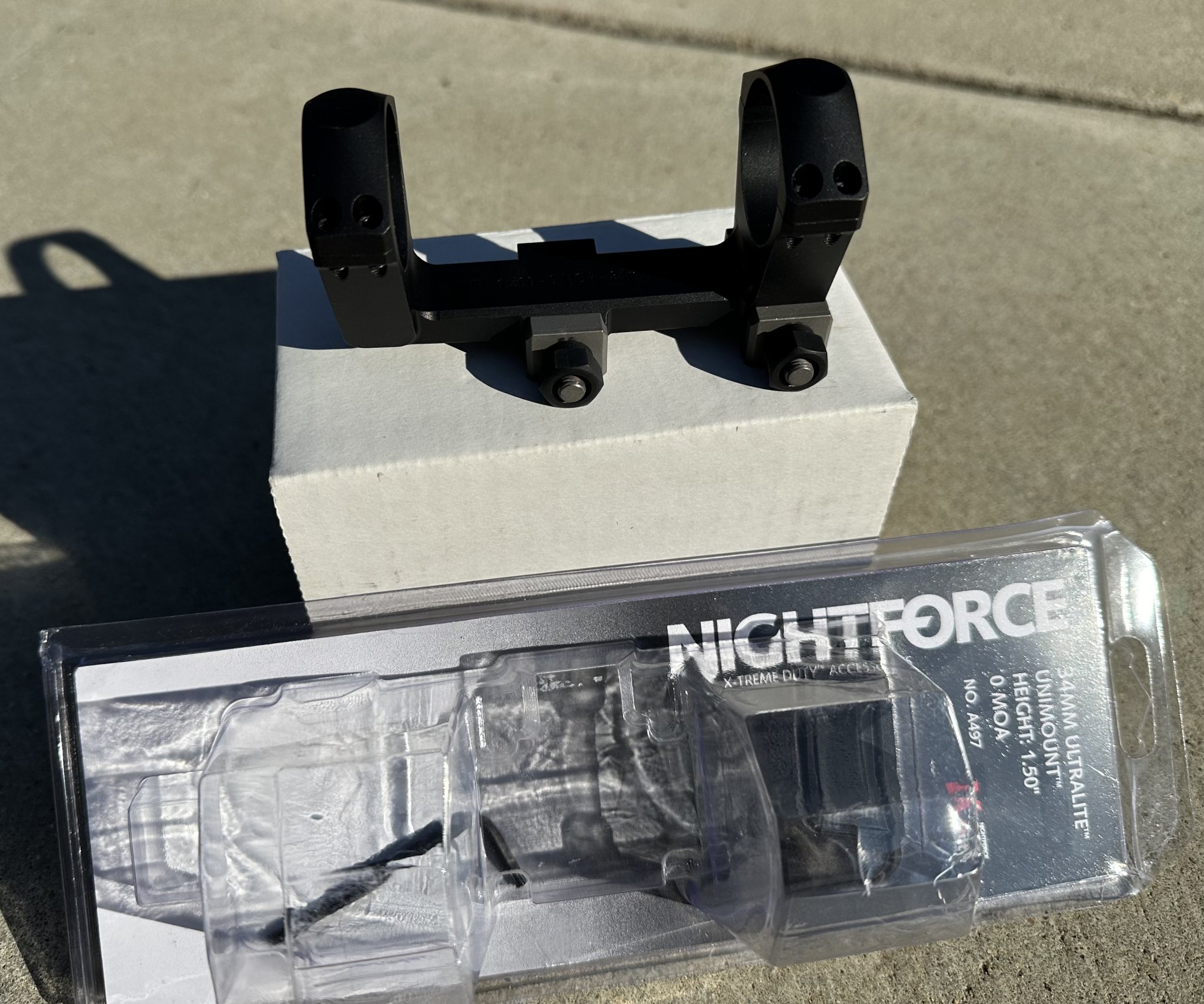 SOLD. New NightForce 34mm Ultralight Unimount 1.5" high, 0 MOA Model # A497 $185