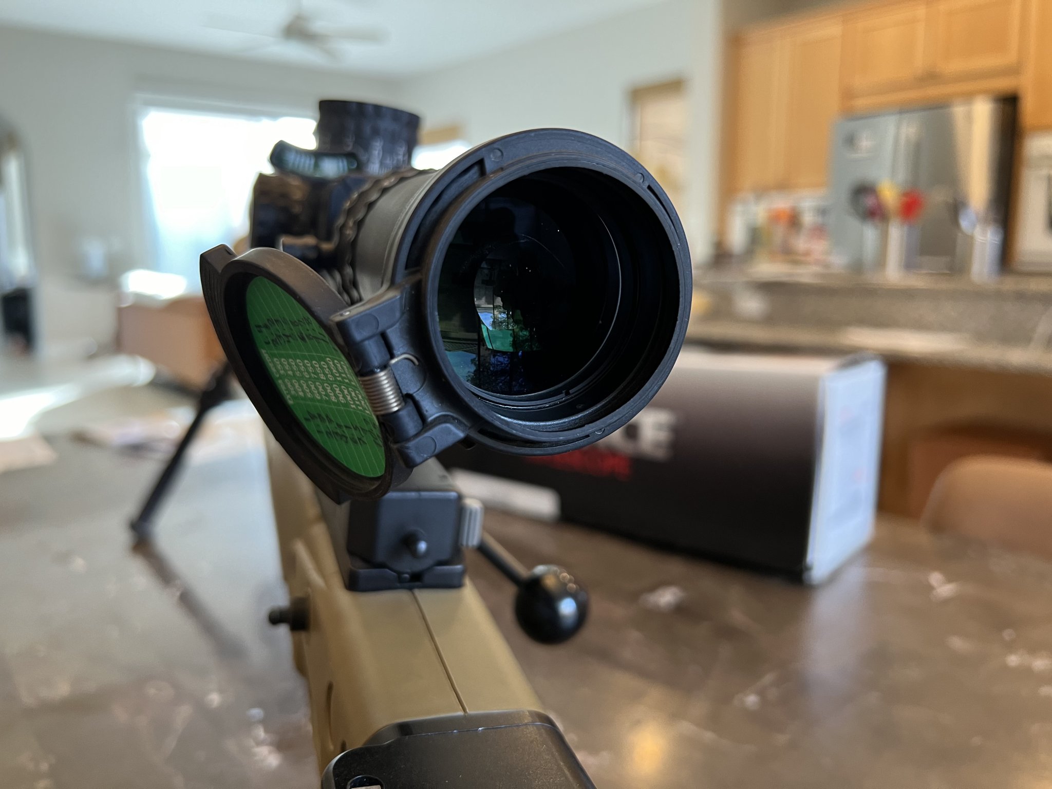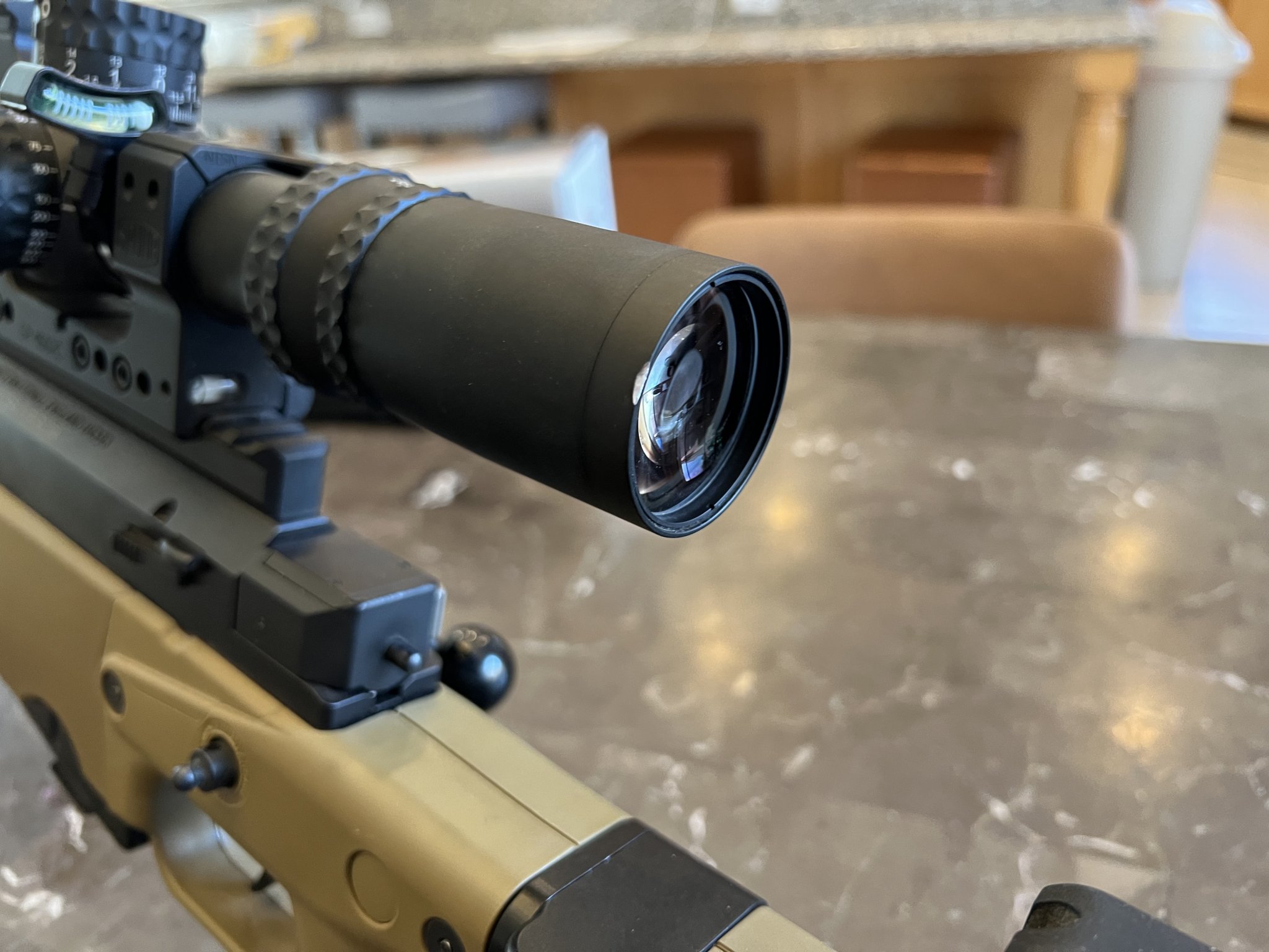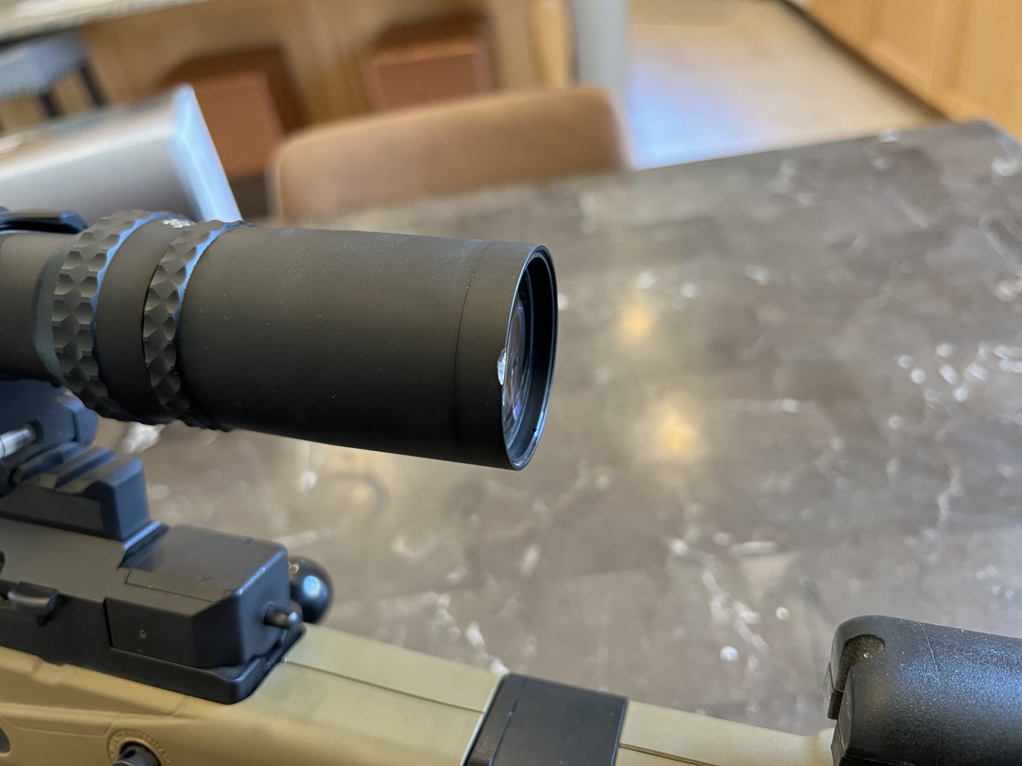 Been running it for the last 4-6 months and it’s been fantastic, however I want to try something different. The only cosmetic flaw with the optic is a light ding around the ocular lens, only visible without the scope caps, or when the scope caps are off and you’re at 35x magnification. Apart from that she is in beautiful condition. Comes with box.