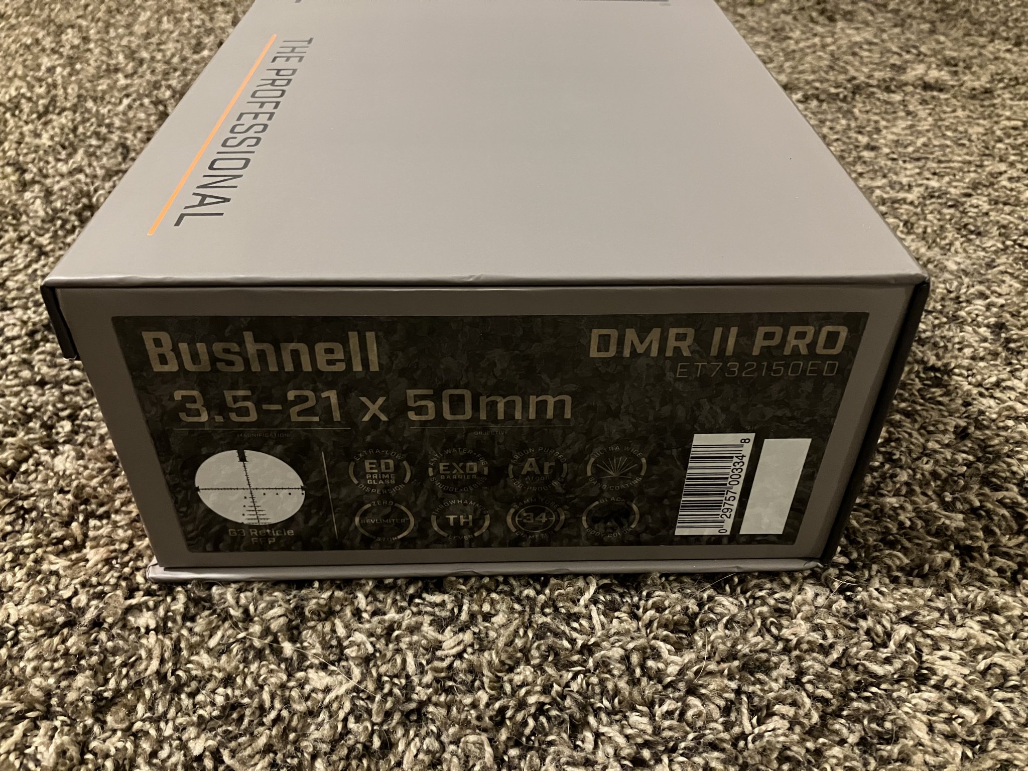 - Bushnell DMR ii Pro 3.5-21x50, FFP, MIL, G3 reticle $850 shipped.