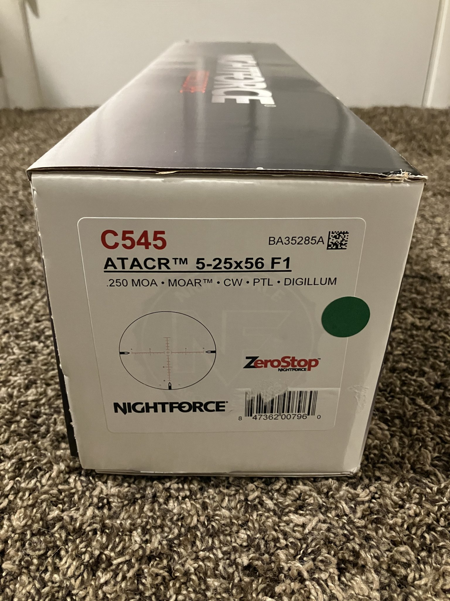 - Nightforce ATACR 5-25x56 (C545) FFP, MOA, MOAR reticle $2200 shipped.