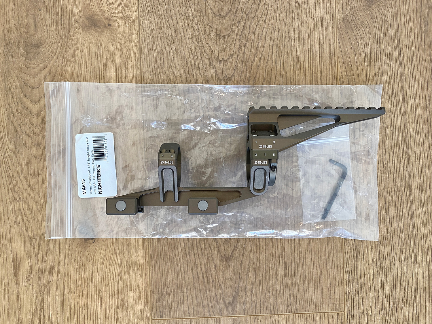 Selling a hard-to-find Nightforce Mil-Contract Ultramount and diving board combo. This is THE correct mount for Nightoforce's P-VPS and S-VPS optic setups and only available with the purchase of the complete kit. The mount fits 34mm optics and has a height of 1.5" with 0 MOA of cant.