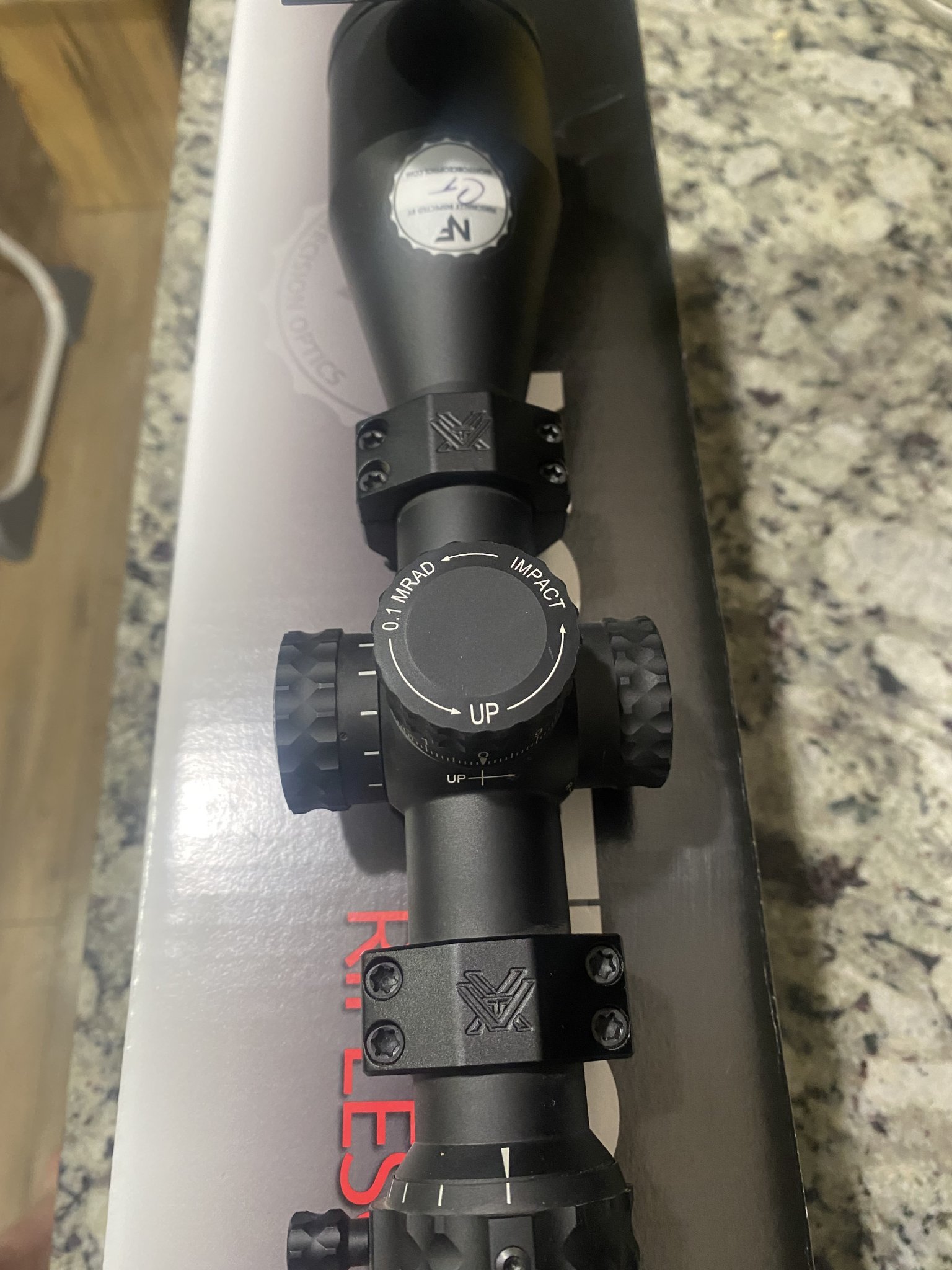 This scope has been mounted on my 6.5 CM and seen exactly 162 rounds. No blemishes. Comes with .97 inch Vortex precision matched rings (paid around $130 for them). Original owner. It is the 4-32x50, Tremor 3, FFP, zero stop, illuminated version. Comes with original box and everything I received with it including the tenebraex lens covers. Awesome scope, just looking to go the 34 mm route. Been to the range a total of 4 times and other than that stored inside in my safe. Let me know if you have any questions. $1850 OBO shipped. Willing to sell the scope alone for $1750.