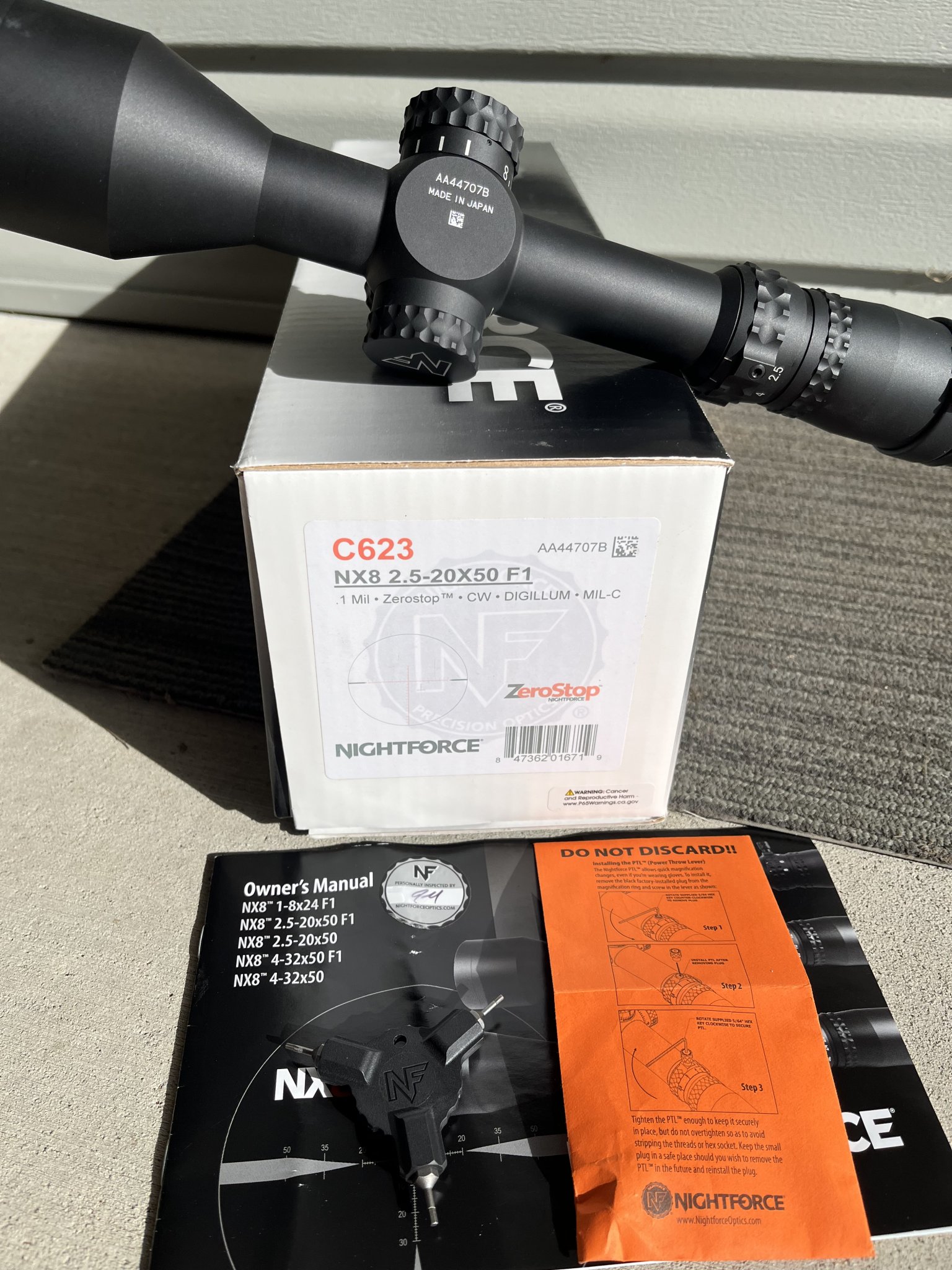 Nightforce NX8 C623 Mil-C, like new, everything included.