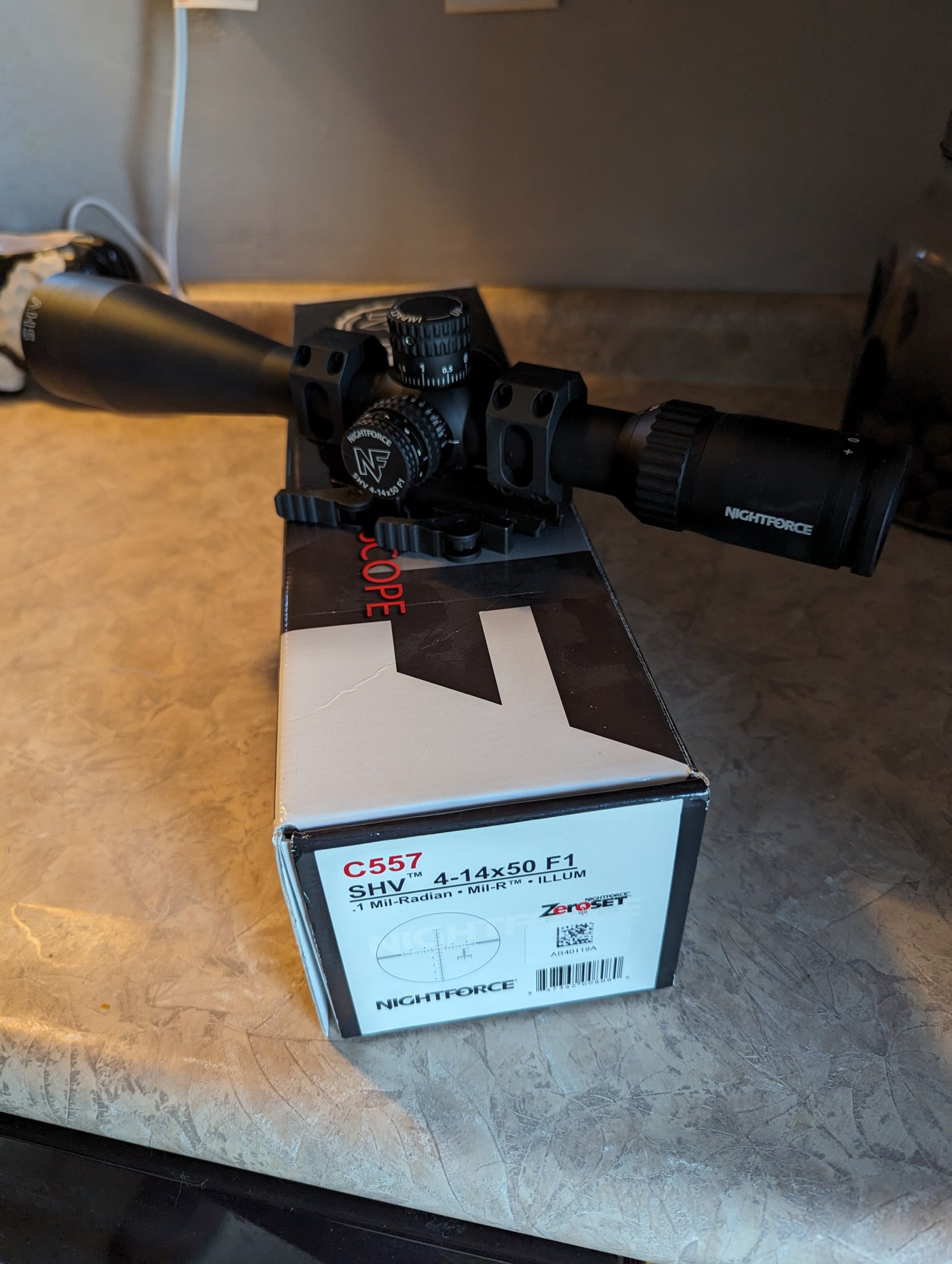 For sale is a Nightforce SHV 4-14x50 F1 with the MIL-R reticle. Bought this scope on here a few years ago and had it on my 20" 223 gasser. Scope is on great condition (ever so slight imperfection on windage cap you can see) and glass is mint. Selling for $930 shipped for just the scope