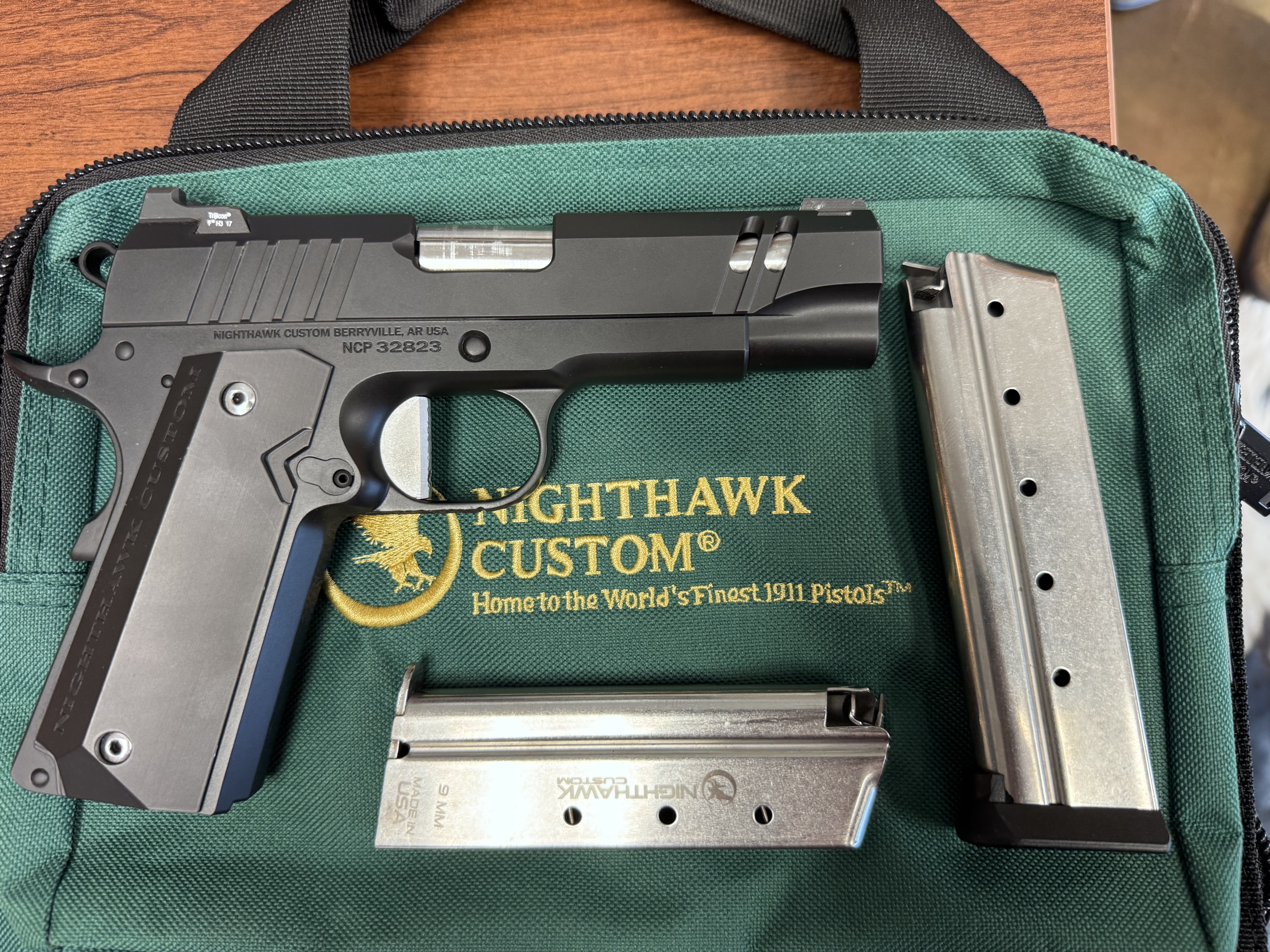 I have a Nighthawk Tricut. Small scratch on one of the grip modules. Can be replaced. Less than 200 rounds through it. Comes with everything it did from the factory. Asking $3500obo
