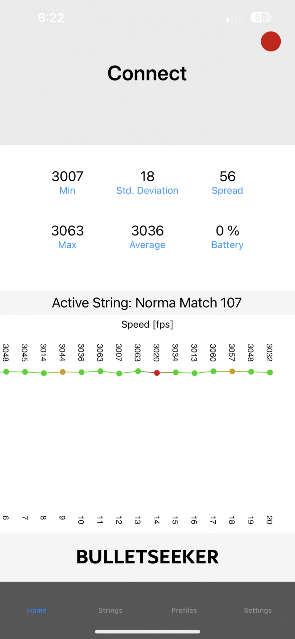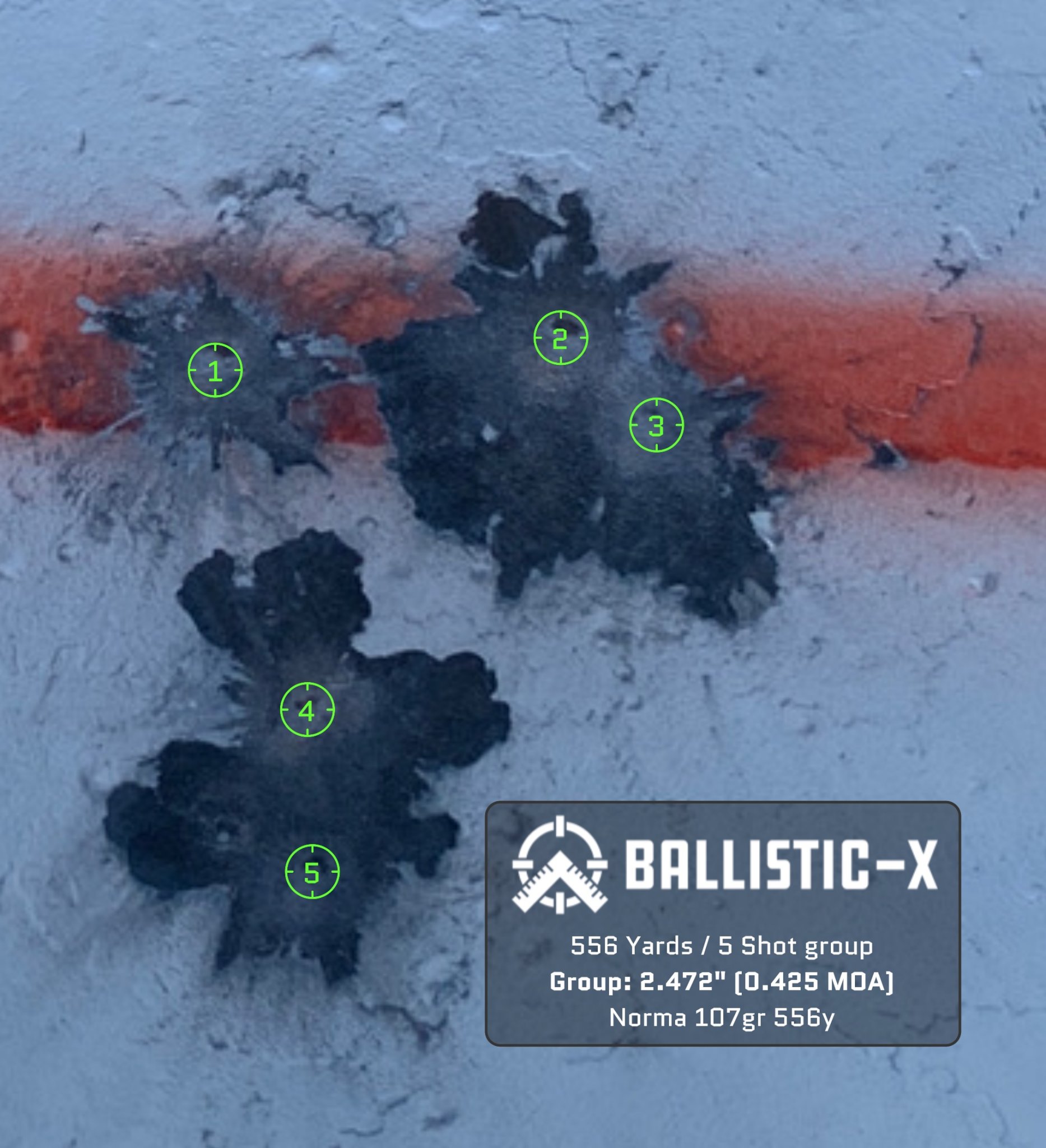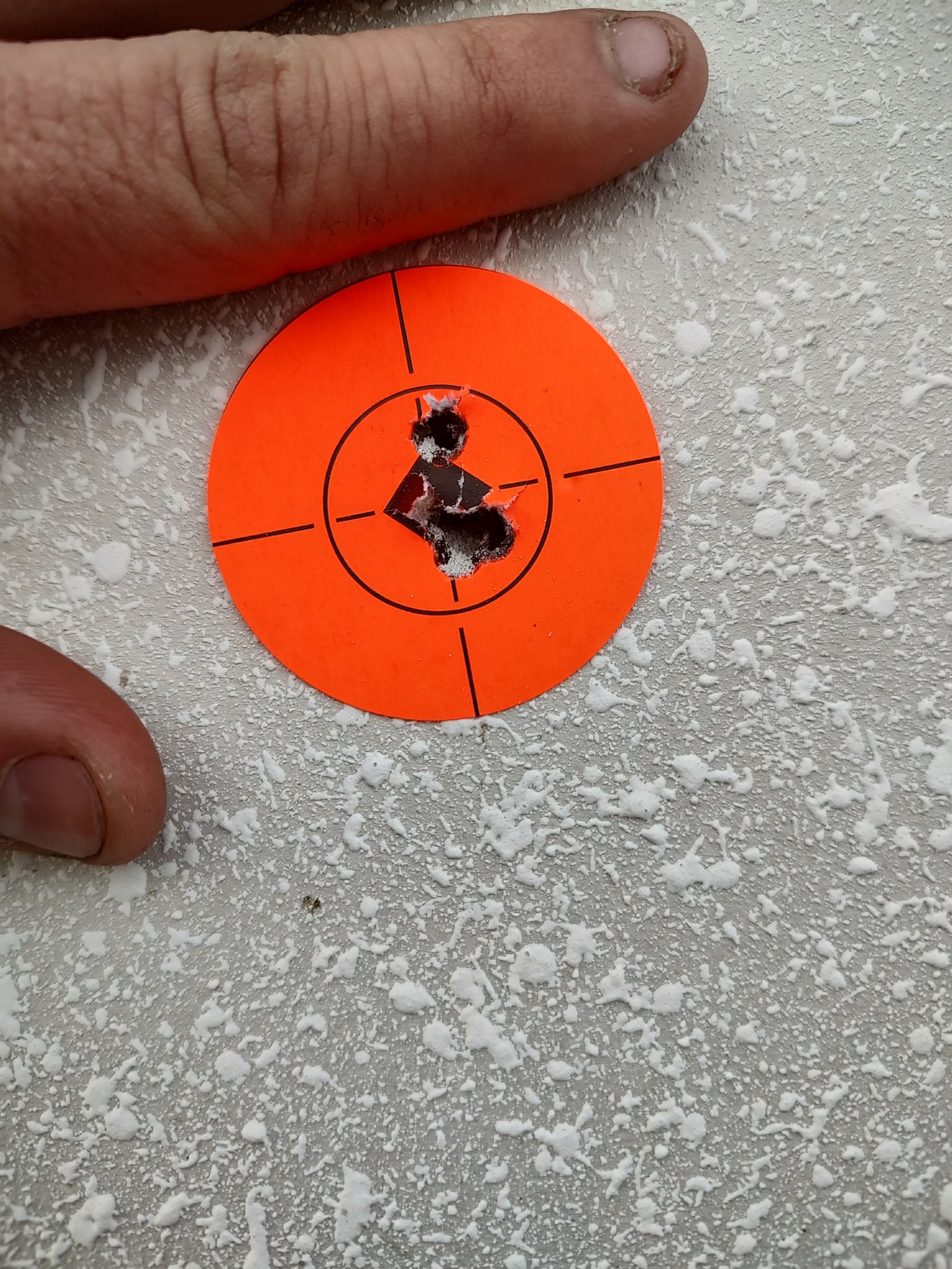 I don’t know my lot number at the moment but I think a call to Norma is order for me. I shot five rounds and they are hot, hot, hot! First round showed 3198 on the LabRadar and the next three were in the 3130 range. The last shot didn’t register, but the primer fell out when I ejected the round. The group was probably 2”. 5 rounds of Berger 105 ammo gave me a 2995 five round average and that is normal in this barrel.