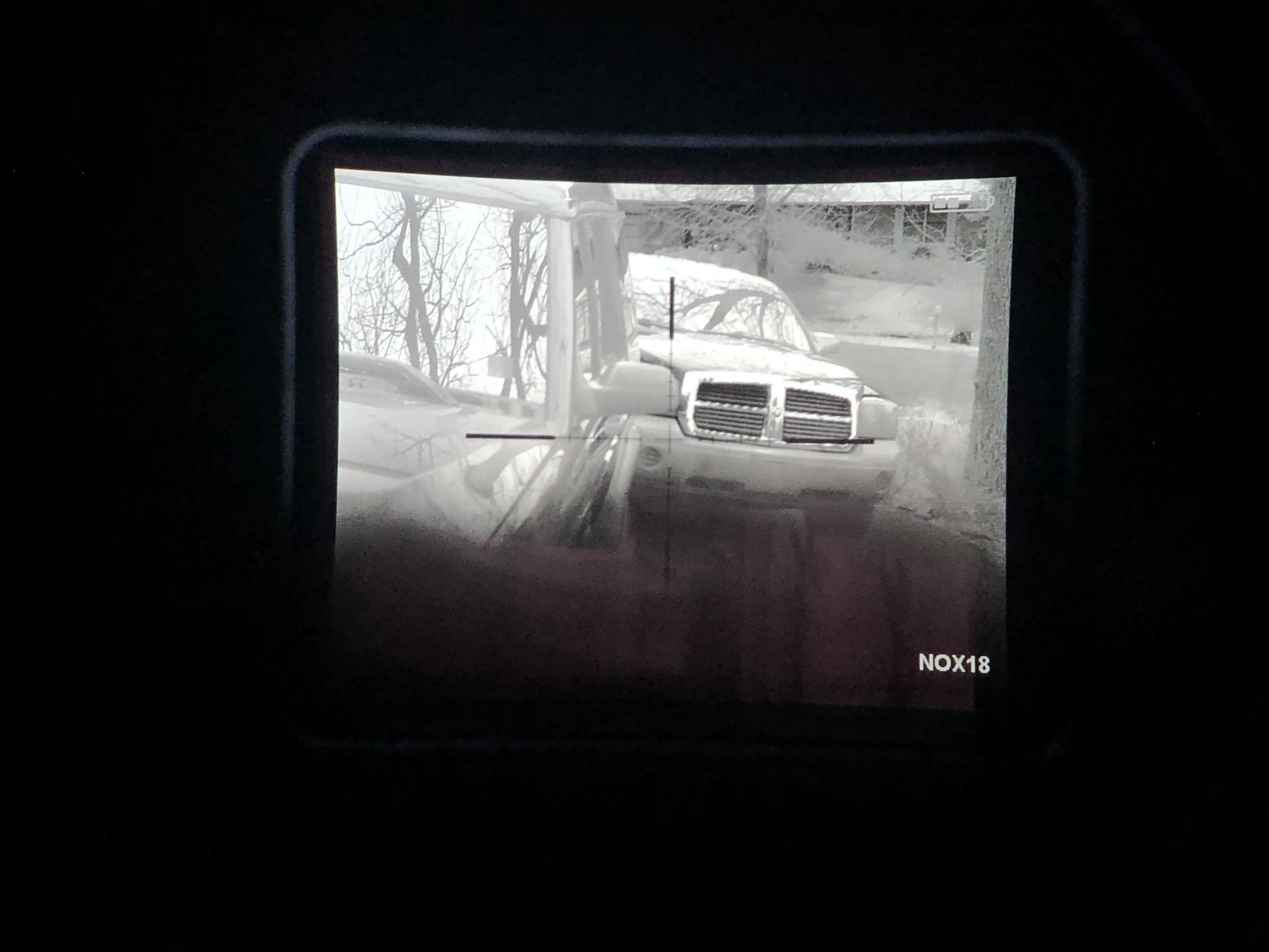Really tough to take a photo of the little screen and represent what it looks like with your naked eye. But this one was the best of the few I took the other night. Nearly pitch black outside, cold and humidI should have got a photo of my vehicles through a PVS-14 while I was at it.
