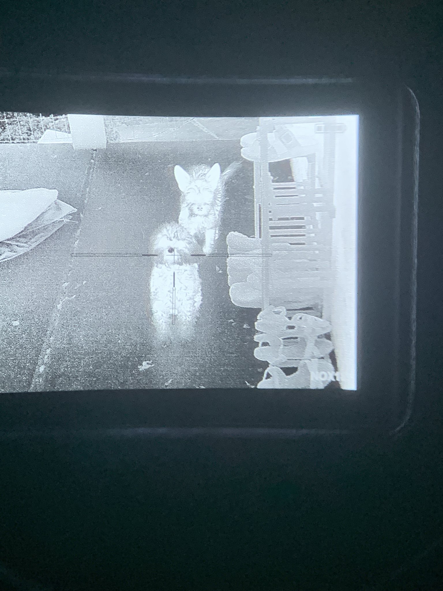 On a rifle it wasn't quite as good but could work if that's all you have. First problem was (as shown in someone else's pic above) seeing your support hand/thumb, the gun's rails, and any lasers/attachments in the lower third of the picture. I tried it directly on the top rail first and had the same issue so then I grabbed a Unity riser afterward and put the Nox on it instead, worked way better and cleared the obstructions. Being this 2.26" height did actually feel great and it was just right. However, while I could see those bunnies I'm not confident in taking the shot with just the thermal view; that's where NVG has a big advantage imo, because you can go active with a laser/illum. That could just be my lack of experience shooting thermal though.