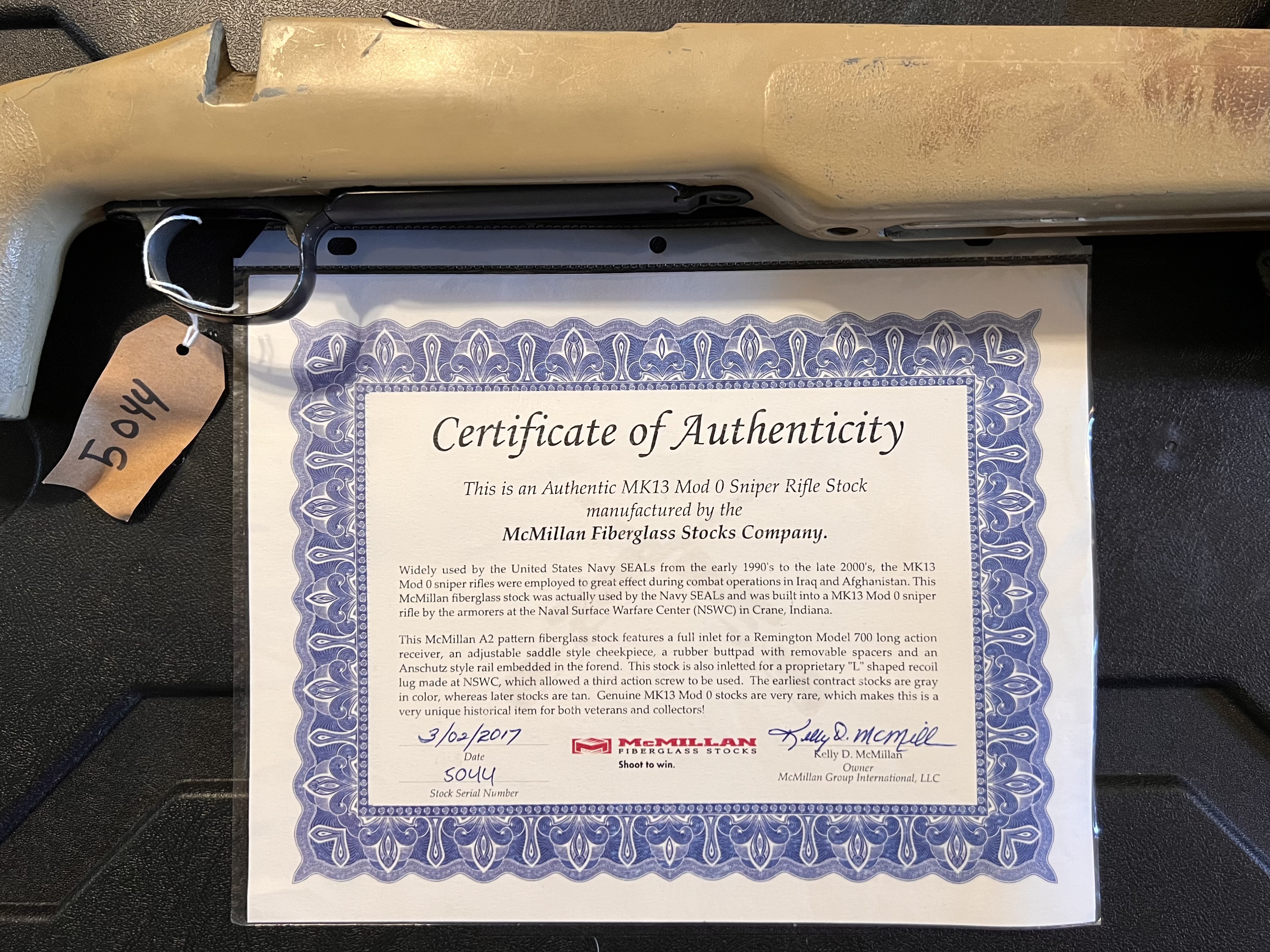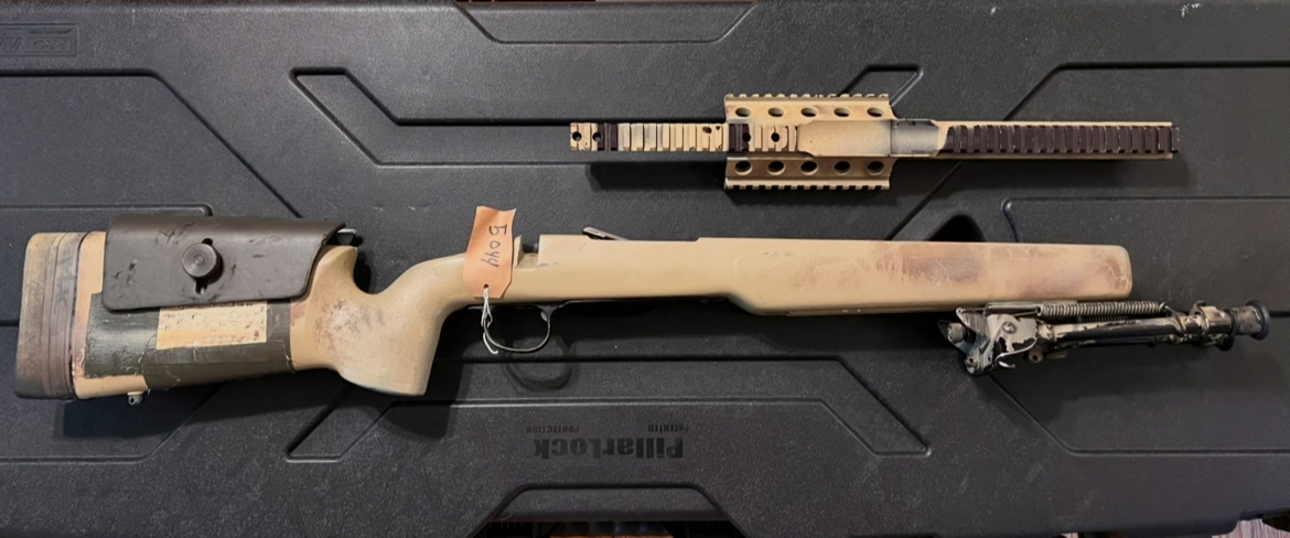 NSW MK13 return stock kit complete with issued MIRS. Also includes bottom metal, Lilja Mod 0 blank, recoil lug, bipod, Turner NM sling, and McMillan certificate. These stocks are a rare piece of OIF/OEF history.