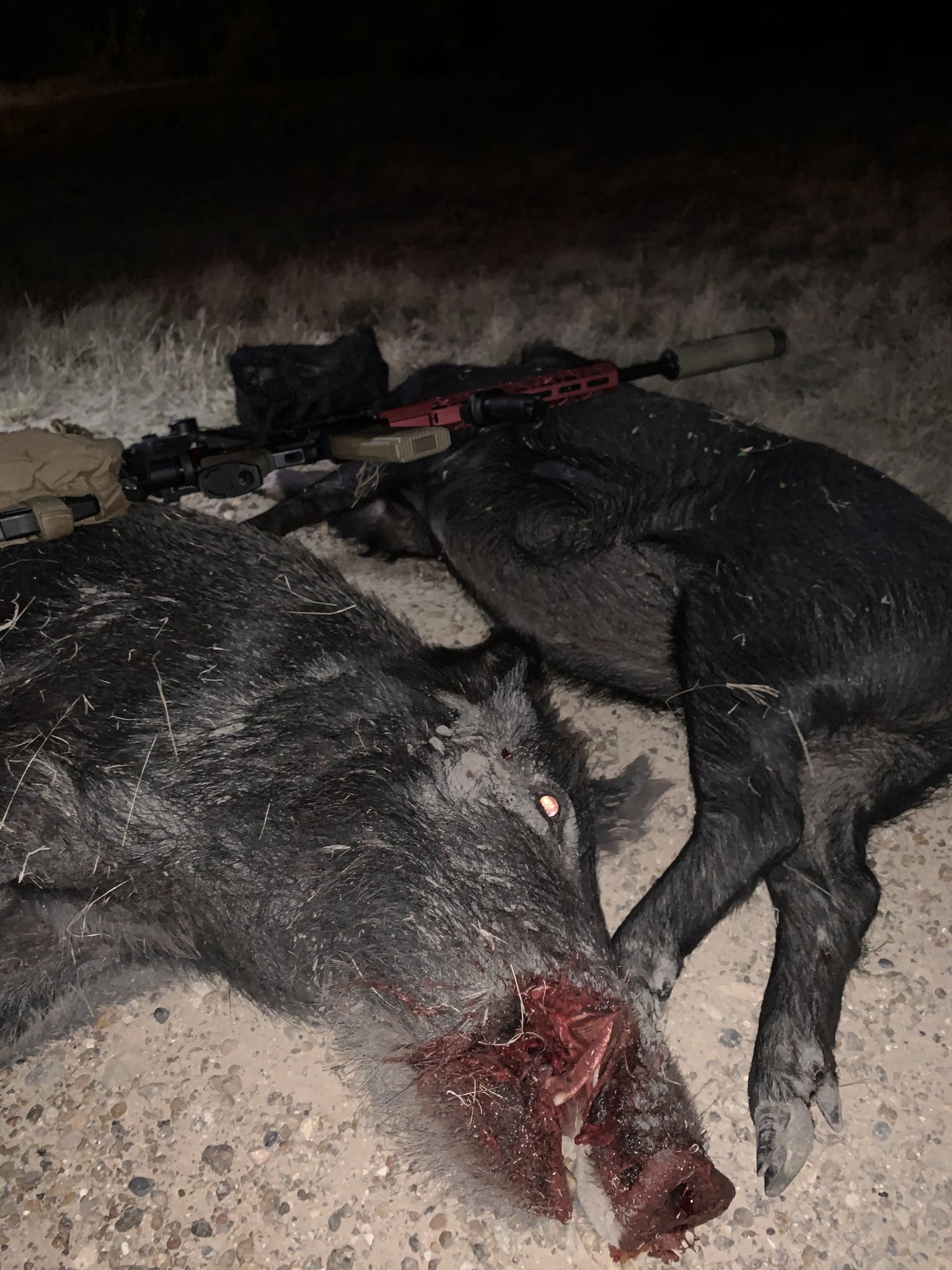 Knocked over 2 early this morning. I recently started shooting a 160TTSX @2900, and so far it does better with doubles than the Accubonds I was using. It deflects less when going through the 1st hog, and all of the secondary targets have dropped on the spot. That’s with a small sample size of 3 pairs. Video in slow motion, otherwise it’s all a blur.