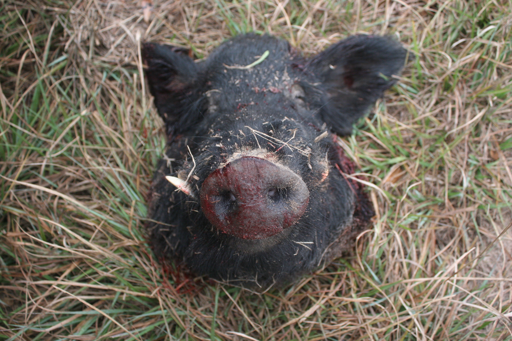 I see his old battle scars. They are not the most friendly creatures. Eat, sex & fight is their life. Rest in peace smelly hog.