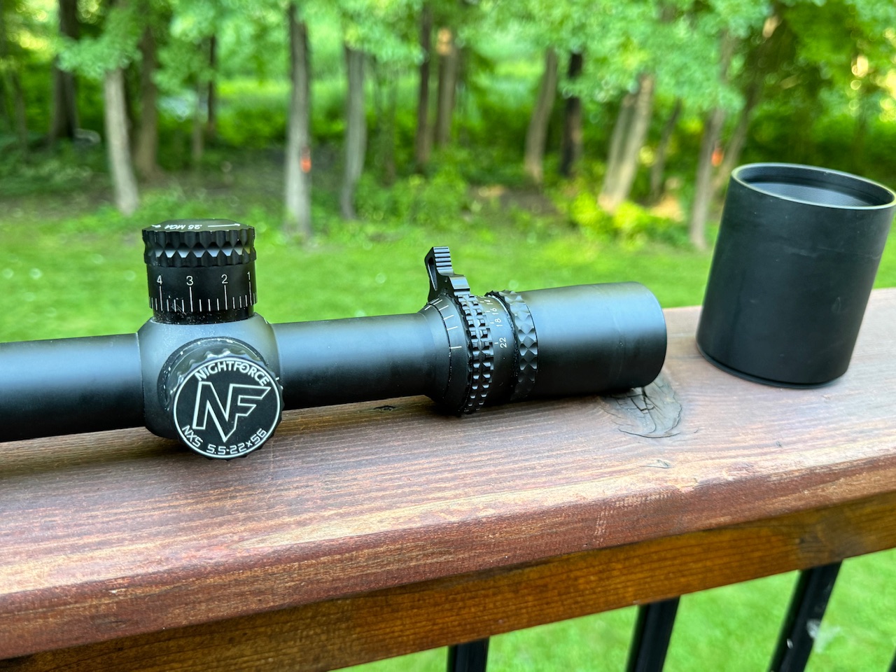 Nightforce NXS 5.5-22x56 with the NP-R2 MOA reticle. Great scope, glass is perfect. Includes sunshade and NF throw lever.