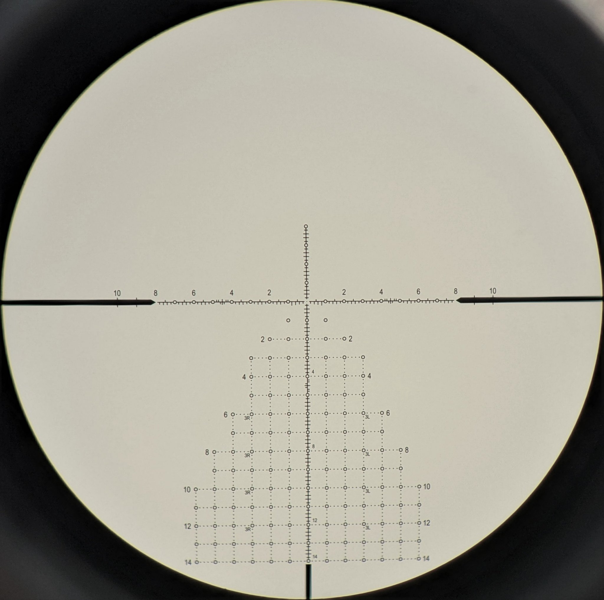 Instead of extending the vertical stadia through the entire upper half of the reticle, we elected to only extend it up to 4.0 mils above center. This should provide more than enough hold-under capability as well as trace reference while also keeping the upper half of the FOV very clean.