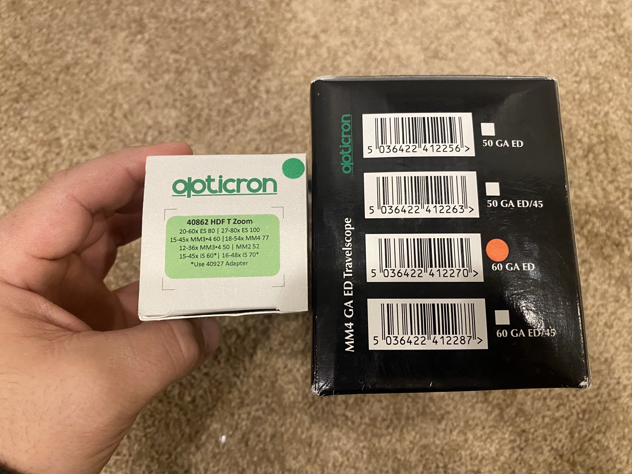 I also bought the MM4 50 ED with the SDLv3 eyepiece to compare against the Nikon ED 50 with the MCII 13-40X eyepiece. Again, they compare extremely well. I did get to compare the SDLv3 against the HDF eyepieces in both scopes and I saw no visual differences. There might be a difference when used in a larger scope at even higher magnifications, but on both MM4’s they were identical.