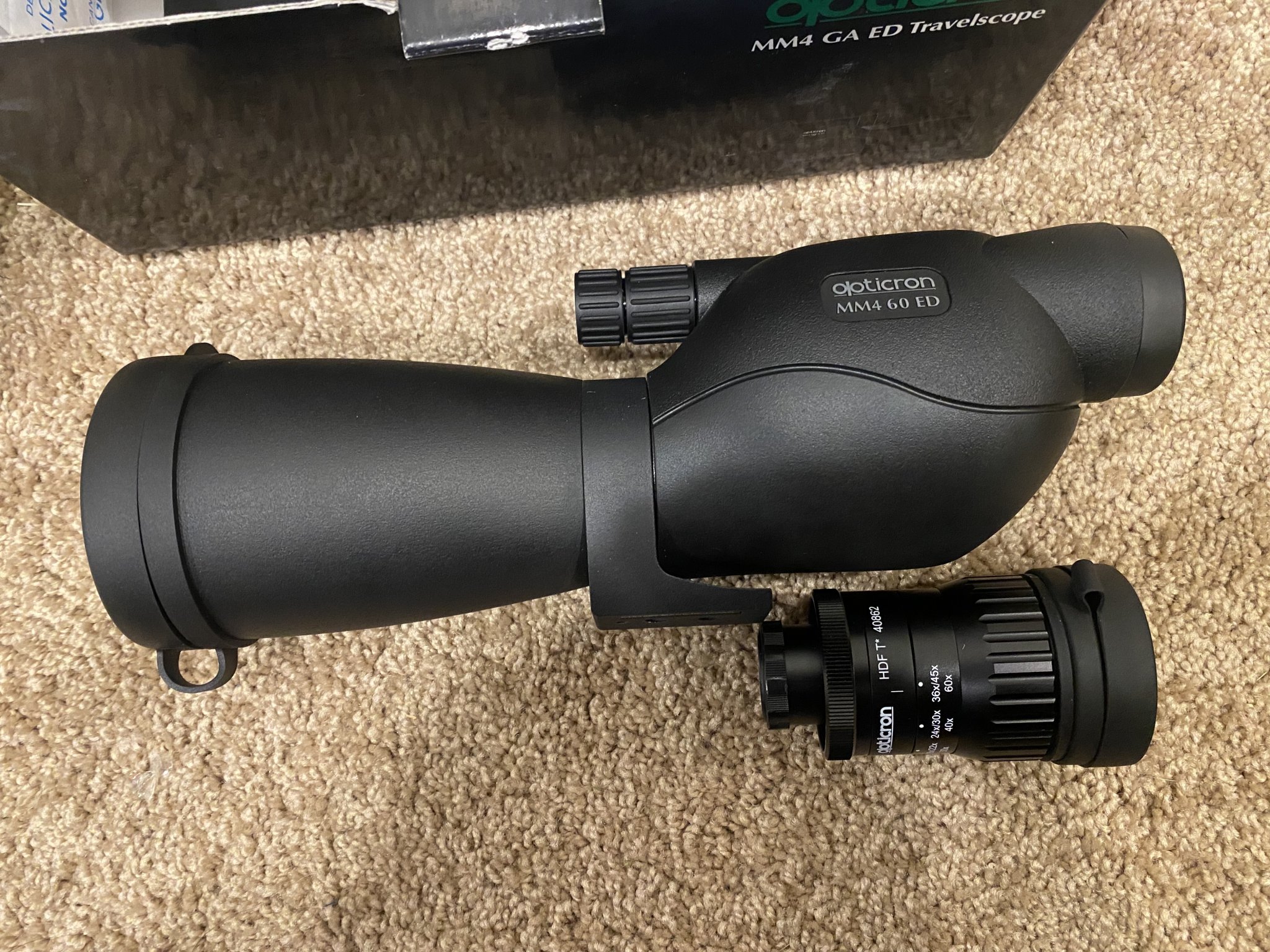 I recently got a good deal on opticsplanet.com for a new MM4 60 ED straight spotting scope and bought it to compare against my Nikon III 60 ED. They compare incredibly well. I just like having the higher zoom range of the Nikon 20-60X. See HERE.