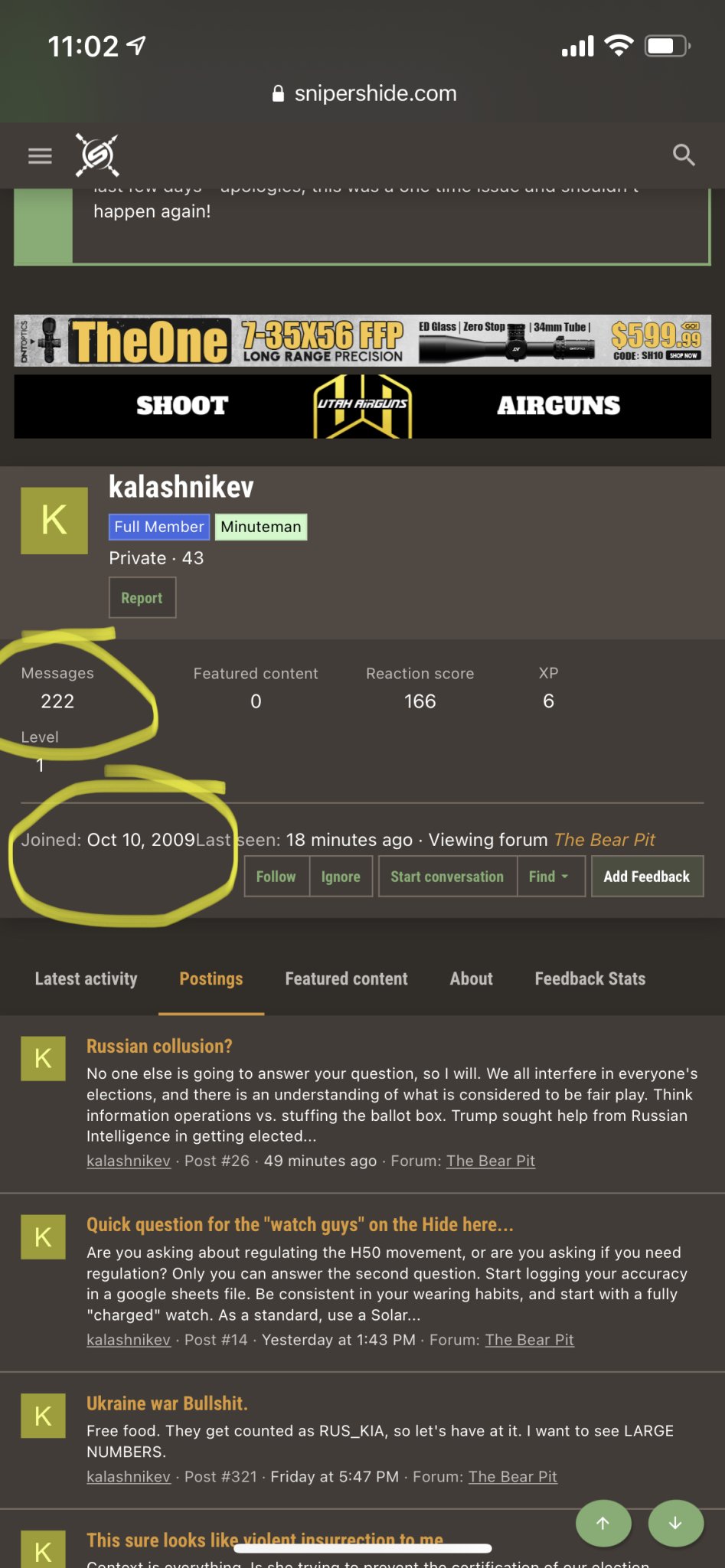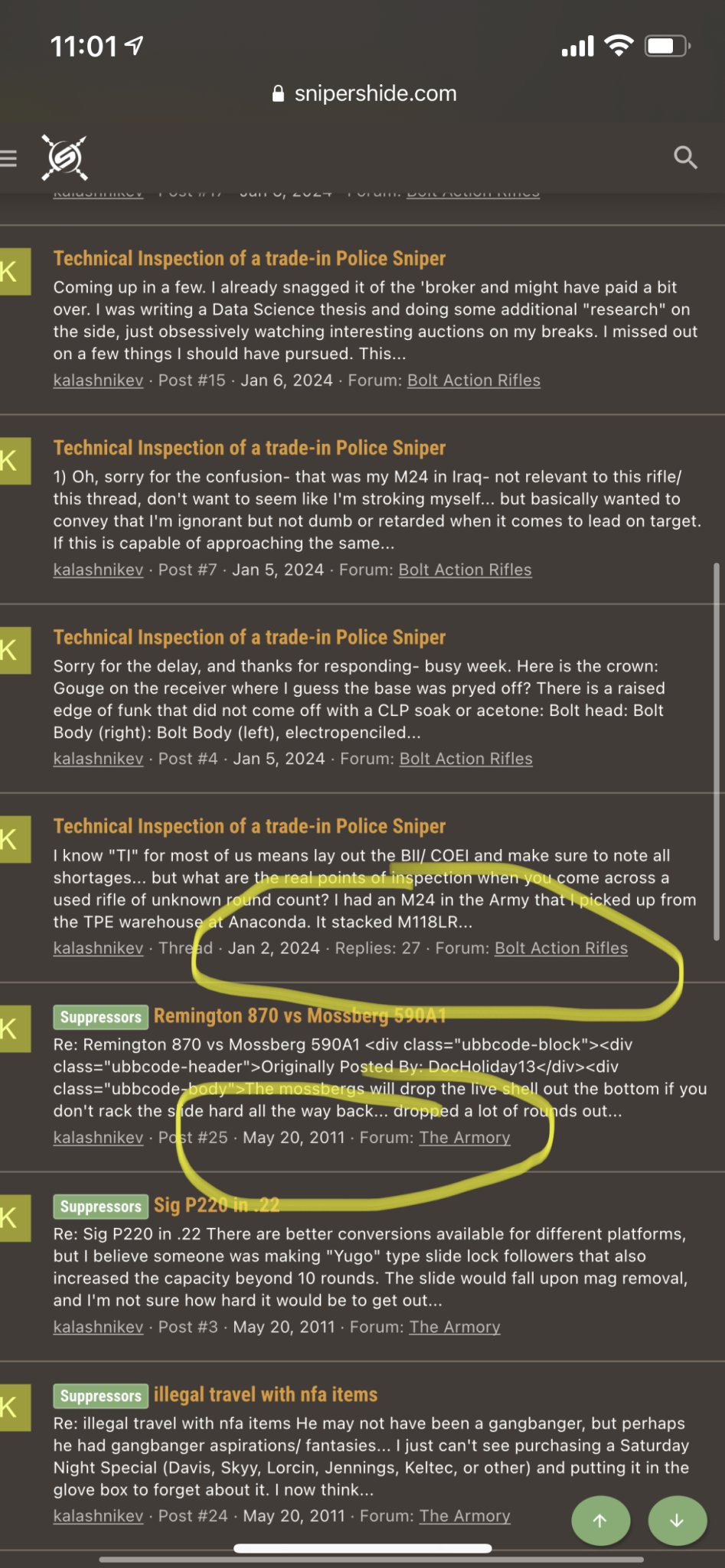 And the political posts are often frontier gibberish and all over the place like crabs on Courtney Love.And ^ that was about the only gun post. 4 posts about the old 700. Then ALL political posts except for 1 post mentioning a suppressor.