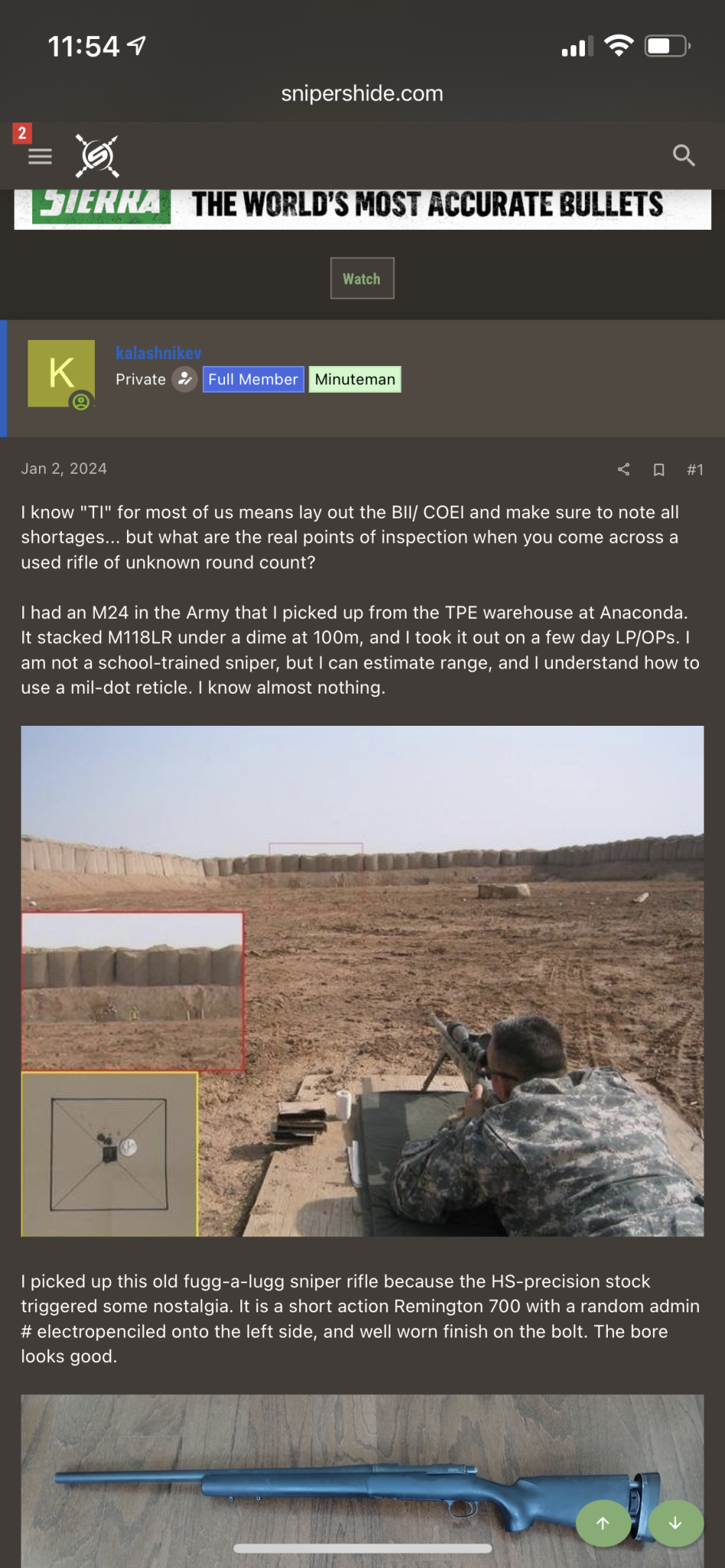 I know "TI" for most of us means lay out the BII/ COEI and make sure to note all shortages... but what are the real points of inspection when you come across a used rifle of unknown round count? I had an M24 in the Army that I picked up from the TPE warehouse at Anaconda. It stacked M118LR...www.snipershide.com
