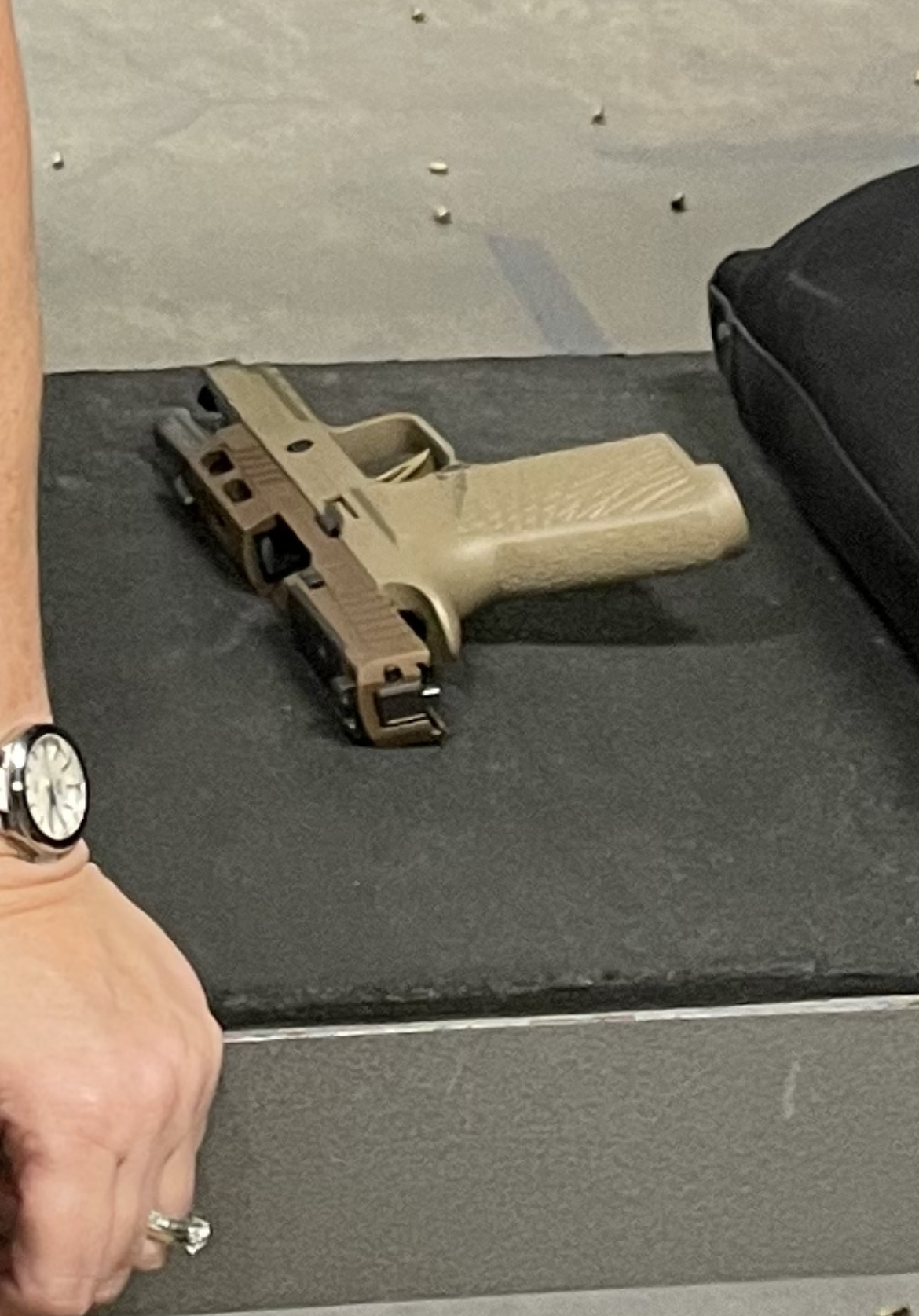 And realized I don’t have a pic of it’s little brother 3.9” in FDE, but here’s a screen grab of a pic from my wife at the range with it last weekend: