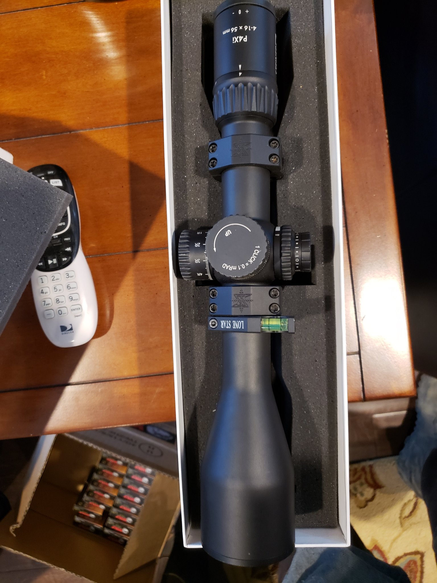 P4Xi 4-16x56 Mil/Mil FFP with the illuminated SCR reticle for sale. 34mm tube. Super clear glass! Scope is like new. Put on the rifle and used for 80 rounds. I have original box that it will ship in. Will also include seekins billet rings and lonestar level. Text us the easiest way to reach me. 423-557-76onetwo $SOLD shipped insured UPS.