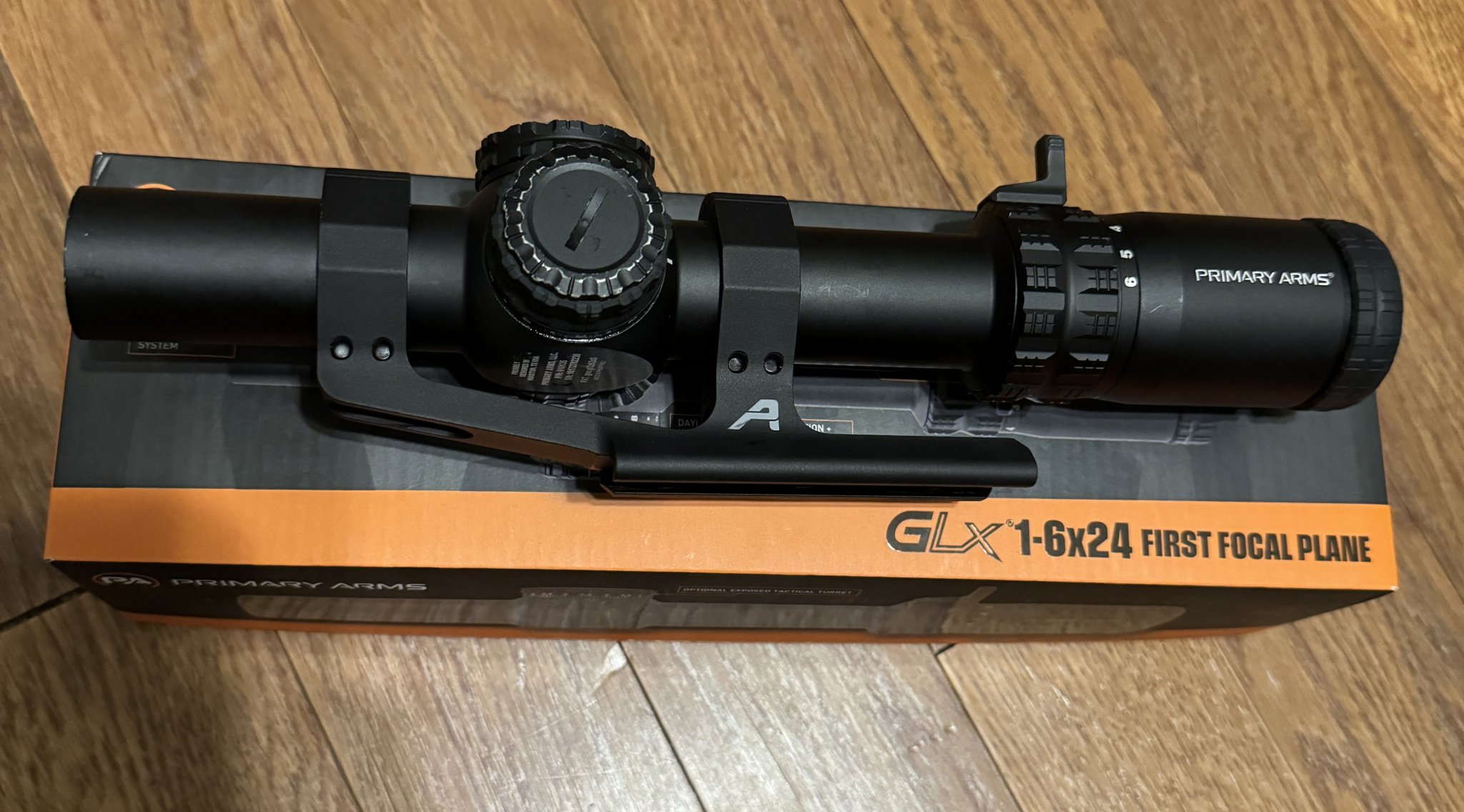 Primary Arms GLx 1-6 logo with acss raptor reticle. Good condition. Some wear on turrets. Comes with box