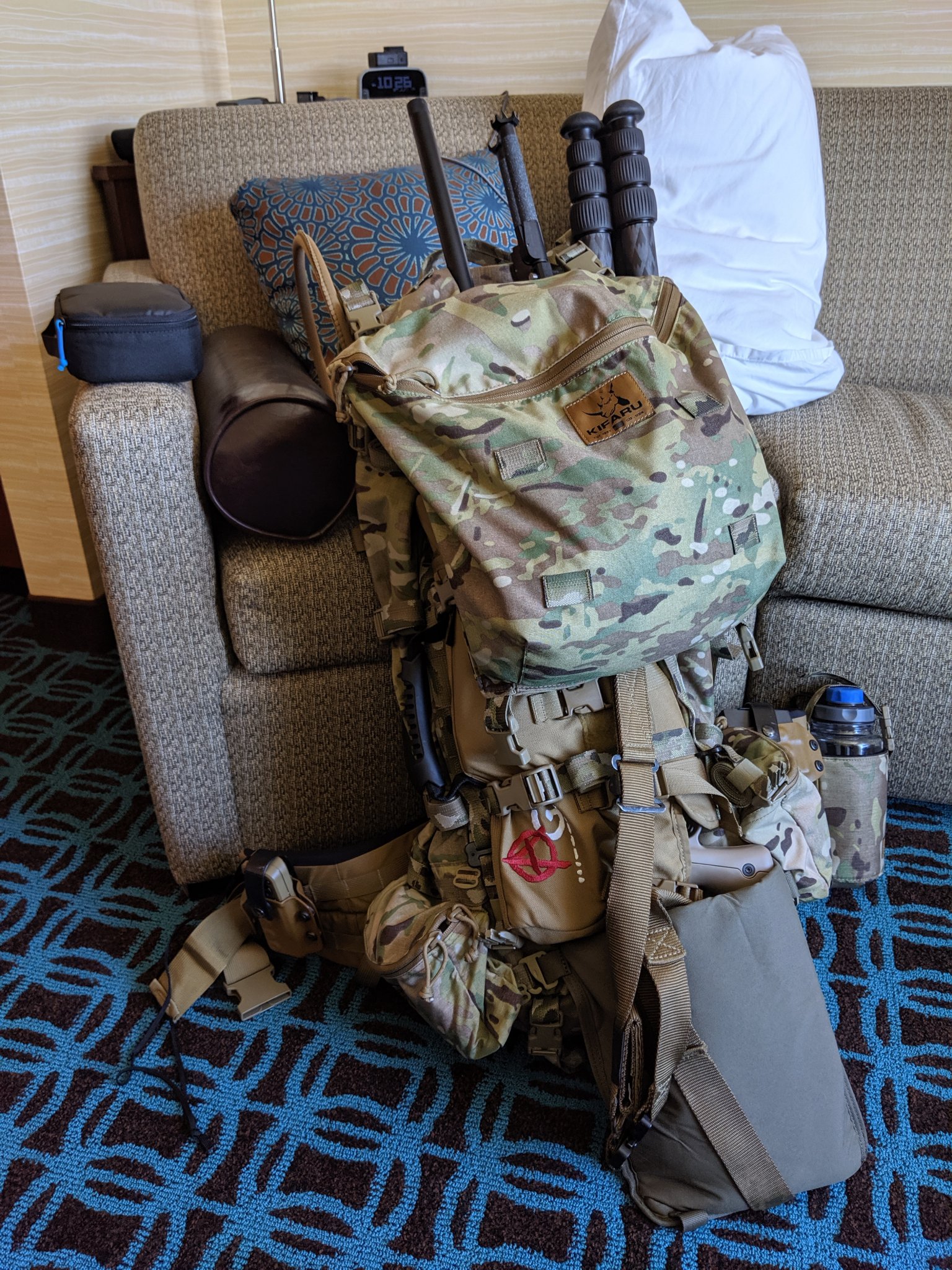 - Right side has IFAK and pouch for binoculars I can access with ruck still on