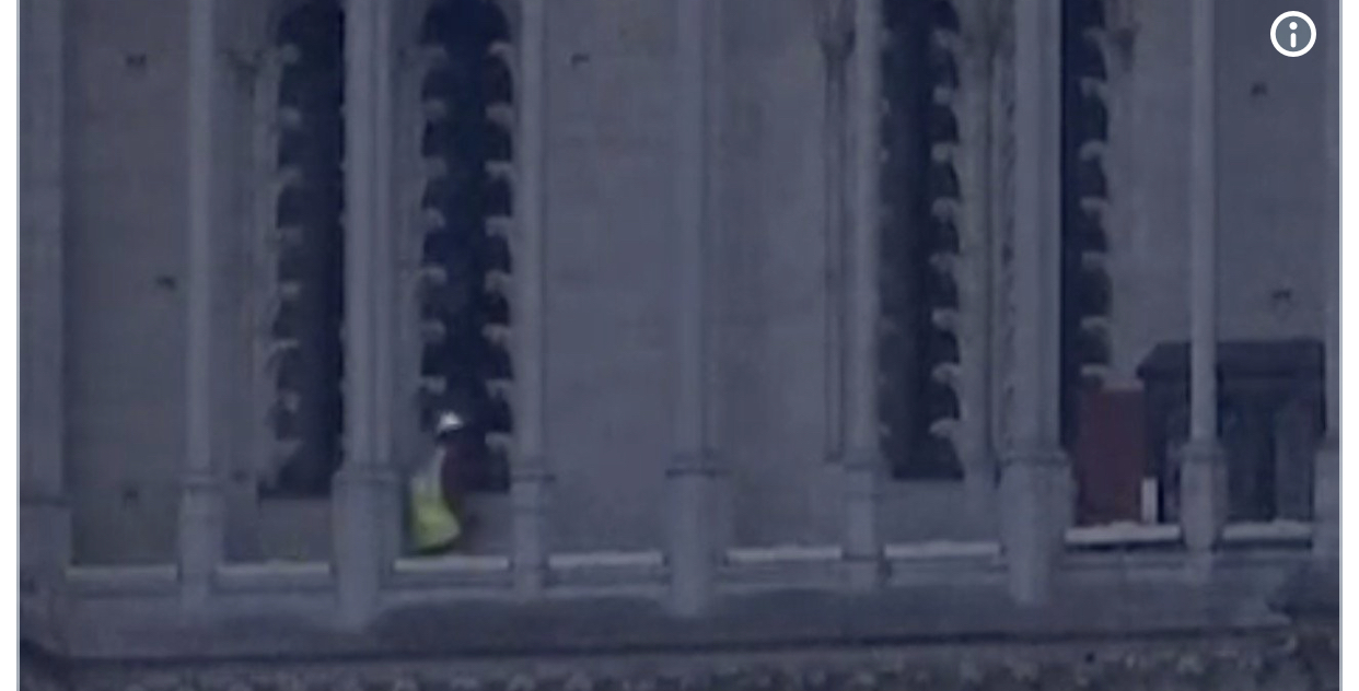 These reports have been squelched. It was "initially believed" to be a construction accident in the steeple.