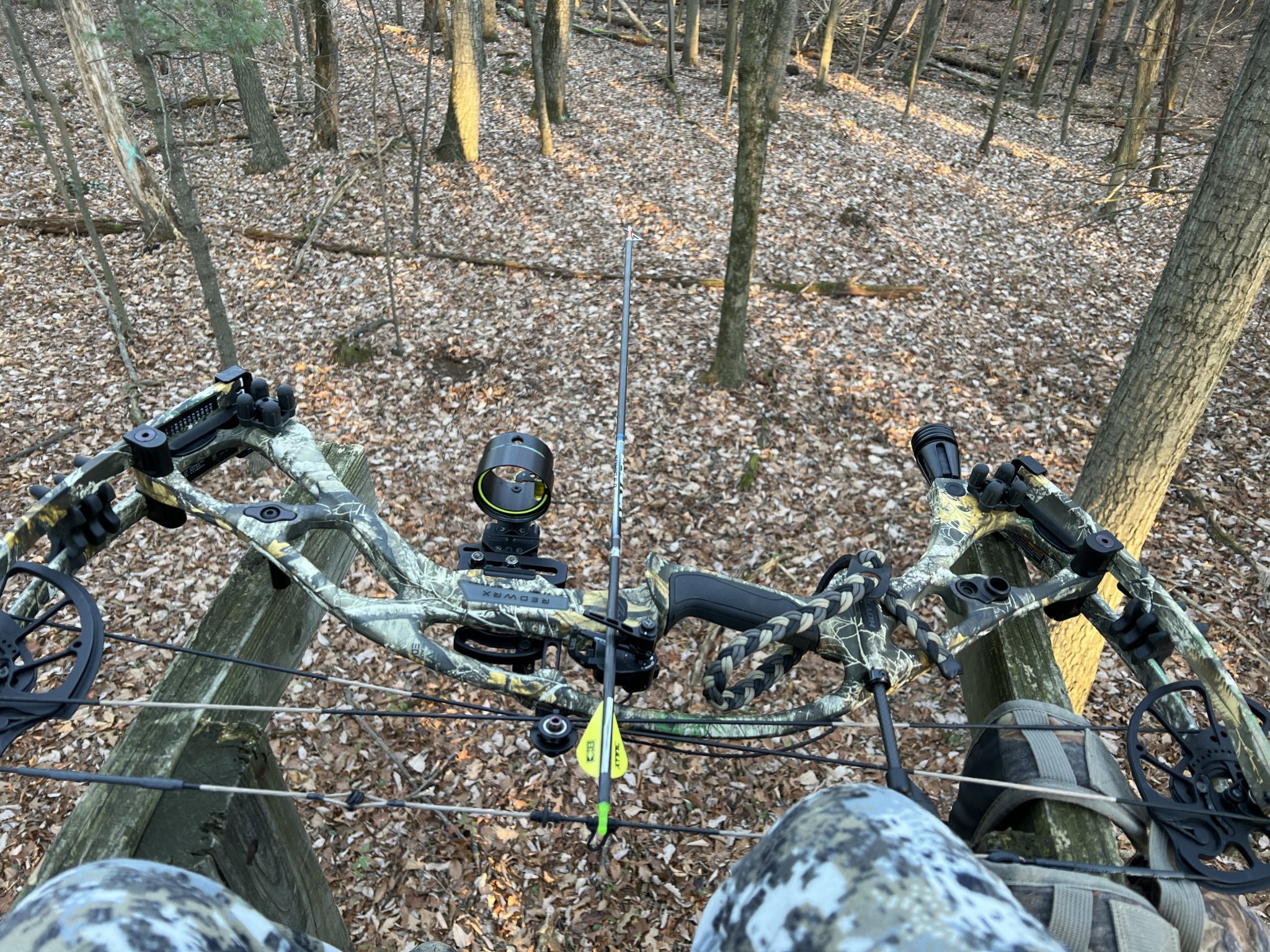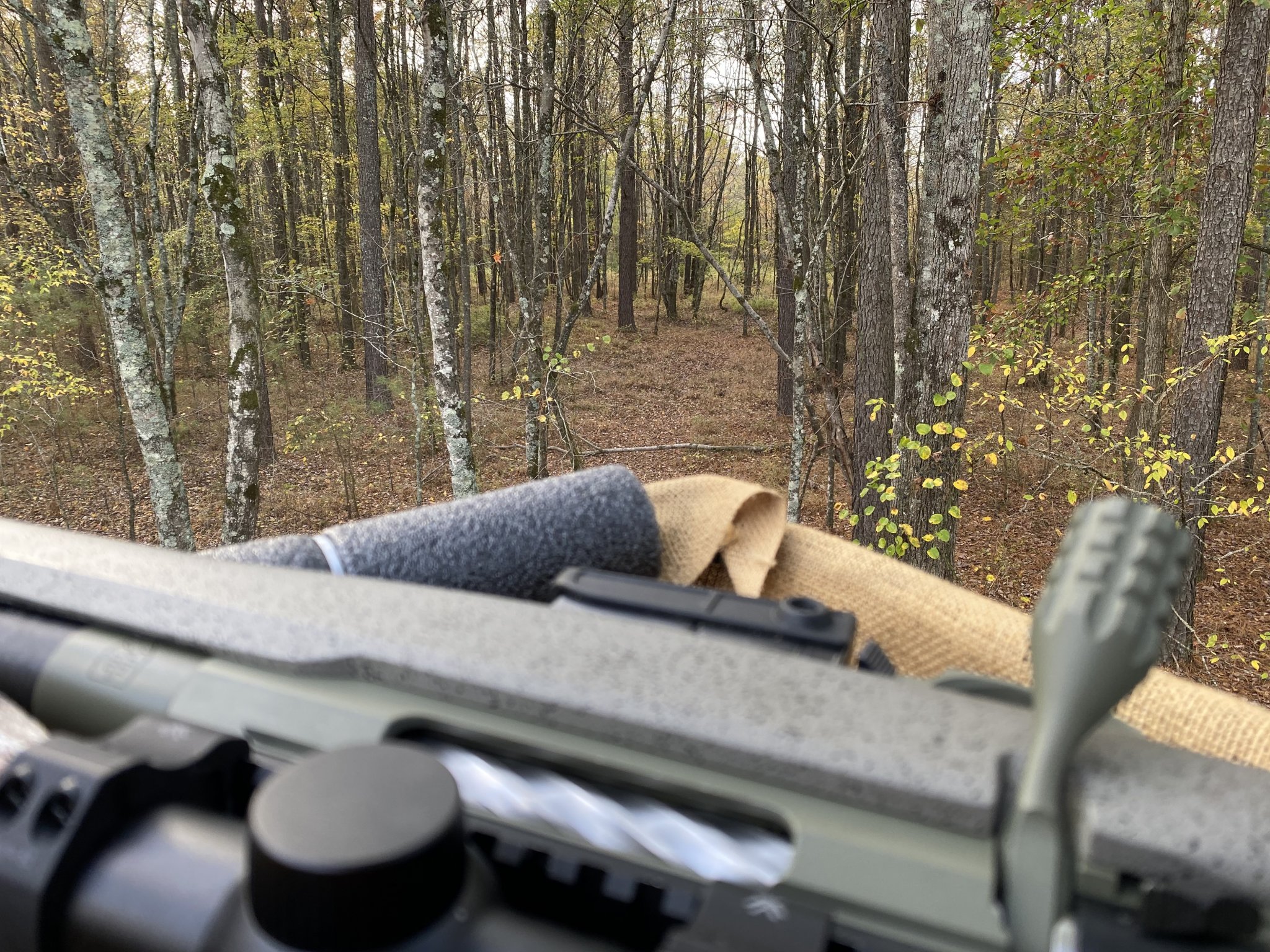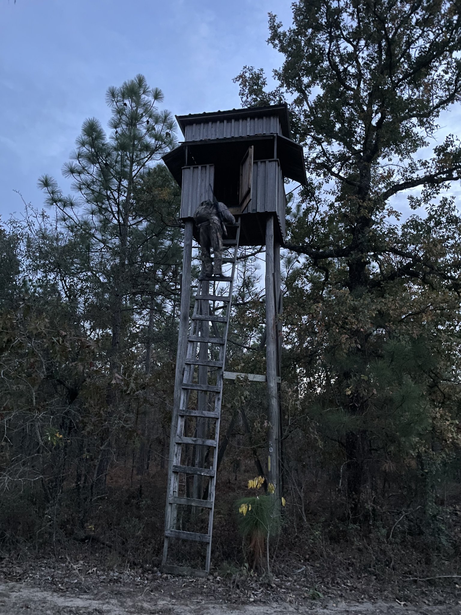 May I make a suggestion? Get a long rope. Tie your (unloaded) rifle to it and lower it to the ground before you try climbing down. (same with getting in the stand, get in it and then raise your rifle to the stand by the rope.).Of the stand…not out of it. More to the point, this is my 70 year old ass trying to not kill myself getting down from there! Haha