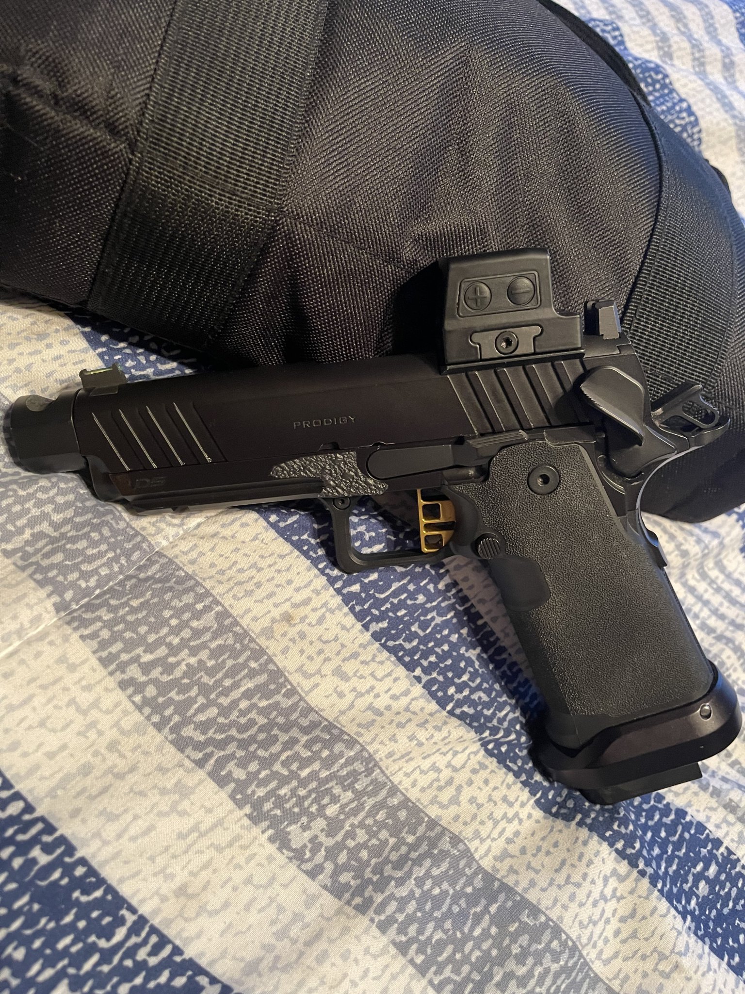 DSC comp barrel,EGW ignition kit,Red dirt trigger, Mag well,TriArc ext slide release,Atlas shielded thumb safety and toolless guide rod,8# spring,buffer pad. Pinned the grip and Marvel cut on the disco it’s my favorite gun to shoot its air rack able. My buddy has a Staccato and shot my Prodigy and was blown away and I’m into it minus the optic just over 2200$ about 3000rds through it runs like a sewing machine I like the action impulse of 4.25 over the 5” that CZ TS2 orange is one bad mofo I’ve been looking for one .You really can’t go wrong with anything you’ve listed above I’ve have a Sig 320 Spectre comp I really like my buddy has the AXG 320 with the ported slide the gun shoots great too hope you get something you like