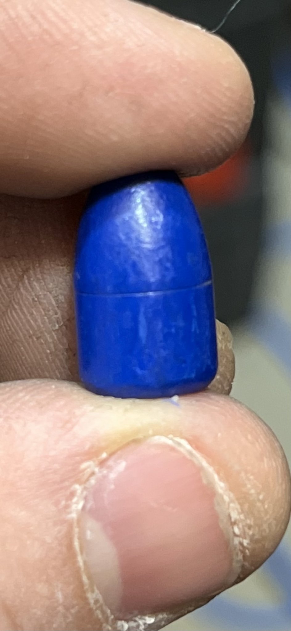 Also, I reload using 180 grain Blue Bullets. Website says that the crimp should show a slight impression, almost none. Three pictures shown below is what I’m getting. If I crimp less, I run into rounds not case gauging very well.