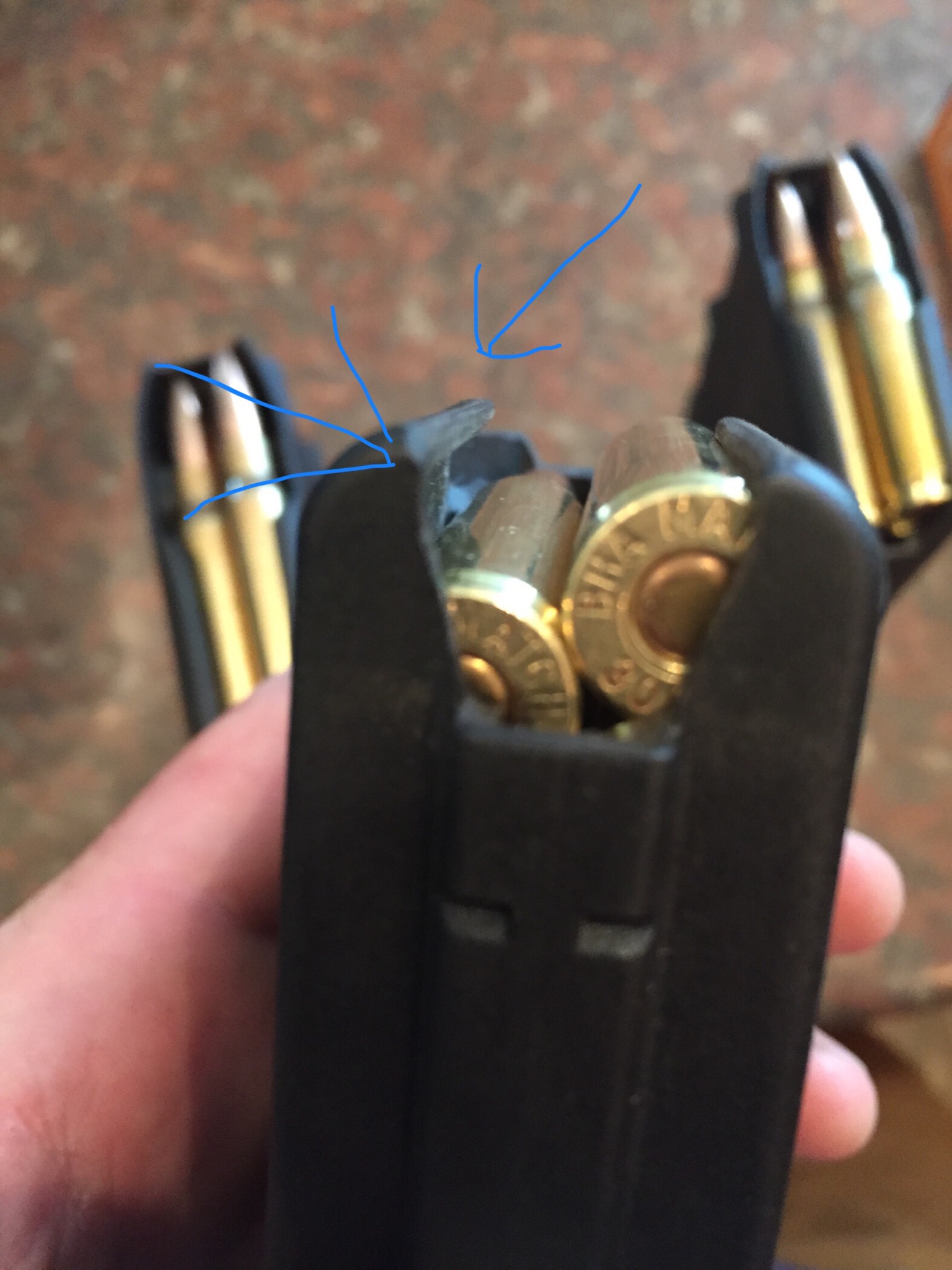 This issue happens with both sides of the mag, both feed ramps. I ran a q-tip along both feed ramps to check for any burrs, but they seem smooth.