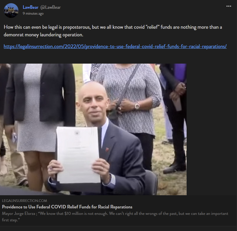 Mayor Jorge Elorza ; “We know that $10 million is not enough. We can’t right all the wrongs of the past, but we can take an important first step.”legalinsurrection.com